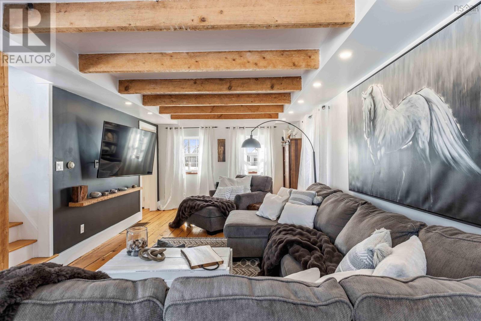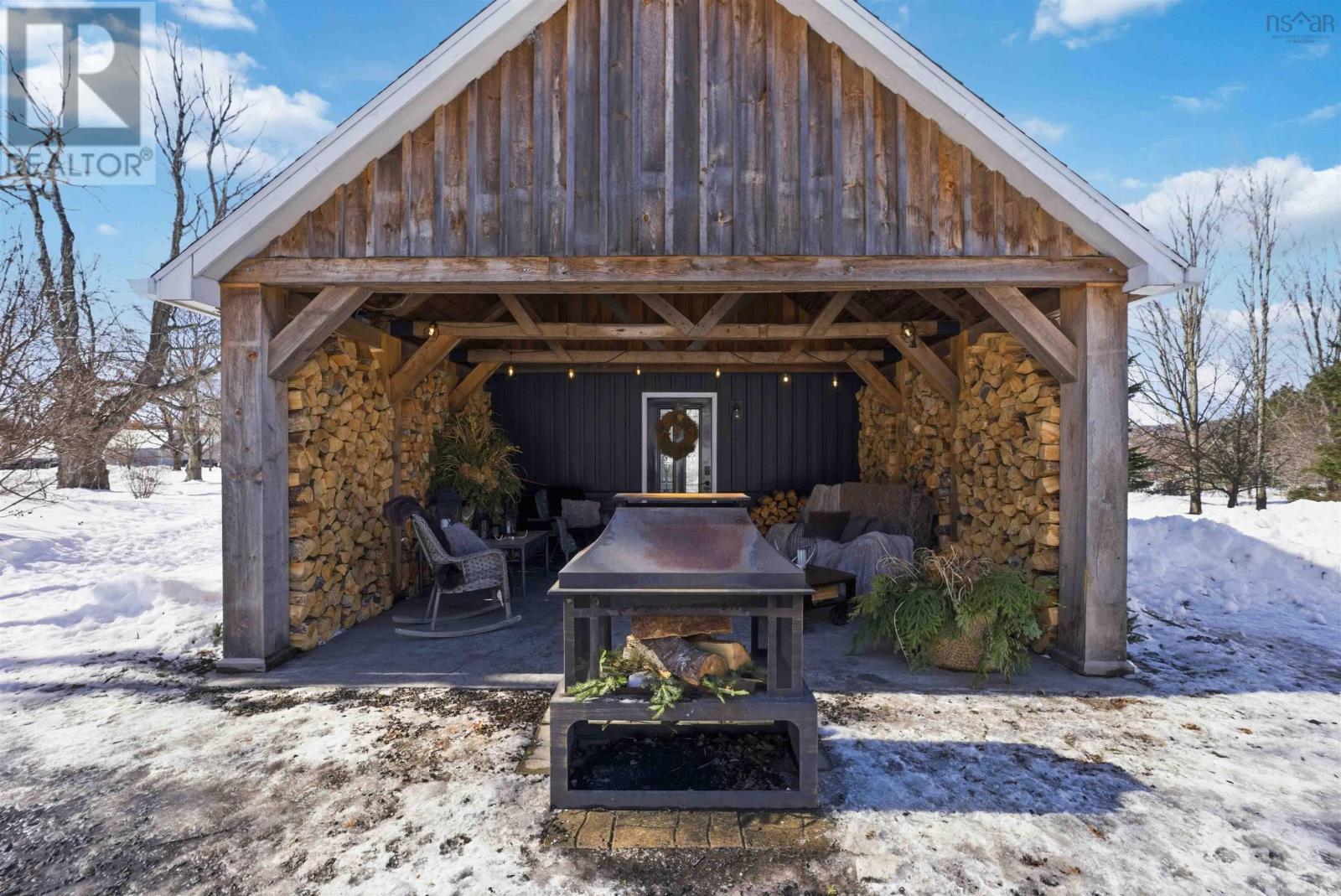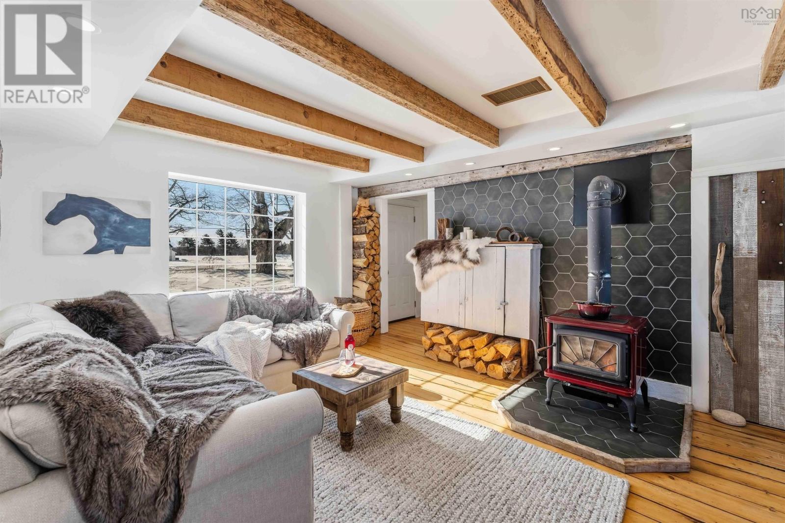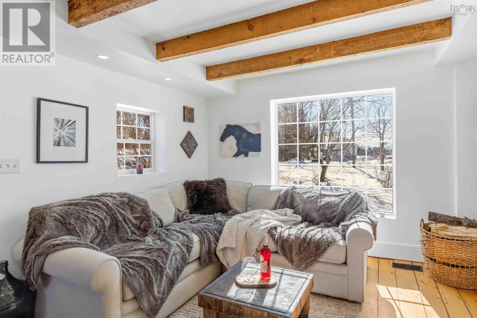 This classic New England cape cod style home has been carefully renovated to maintain its character and charm while adding warmth and comfort throughout. As you approach the property you will be drawn in by the inviting covered patio leading to the main entrance. Opening the door will reveal a large mudroom with laundry followed by an open concept kitchen/dining/living area complete with a wood stove - perfect for entertaining. A powder room, and a family room complete the main level, while upstairs you will find 3 bedrooms plus a 4-pc bath. The 1.9-acre property is fully cleared and was previously used to keep horses. The contemporary barn was constructed within the last 6 years and offers 2 large and airy horse stalls both with direct access to outdoors, one is 24 x 12 and the other is 12 x 12. The barn also includes a loft area, storage or work area, and a side shed bay. In front of the barn you will find a raised 120 x 80 sand riding ring and the former paddock behind the barn is still partially fenced and could easily be restored. A short walk to the back of the property provides a tranquil escape from everyday life where you can sit beside the little river and listen to the birds and animals chirp or enjoy the landscaped fire pit. While this property gives you that warm country feeling it is only 5 minutes away from town amenities and just 10 minutes from CFB Greenwood. (id:49203)