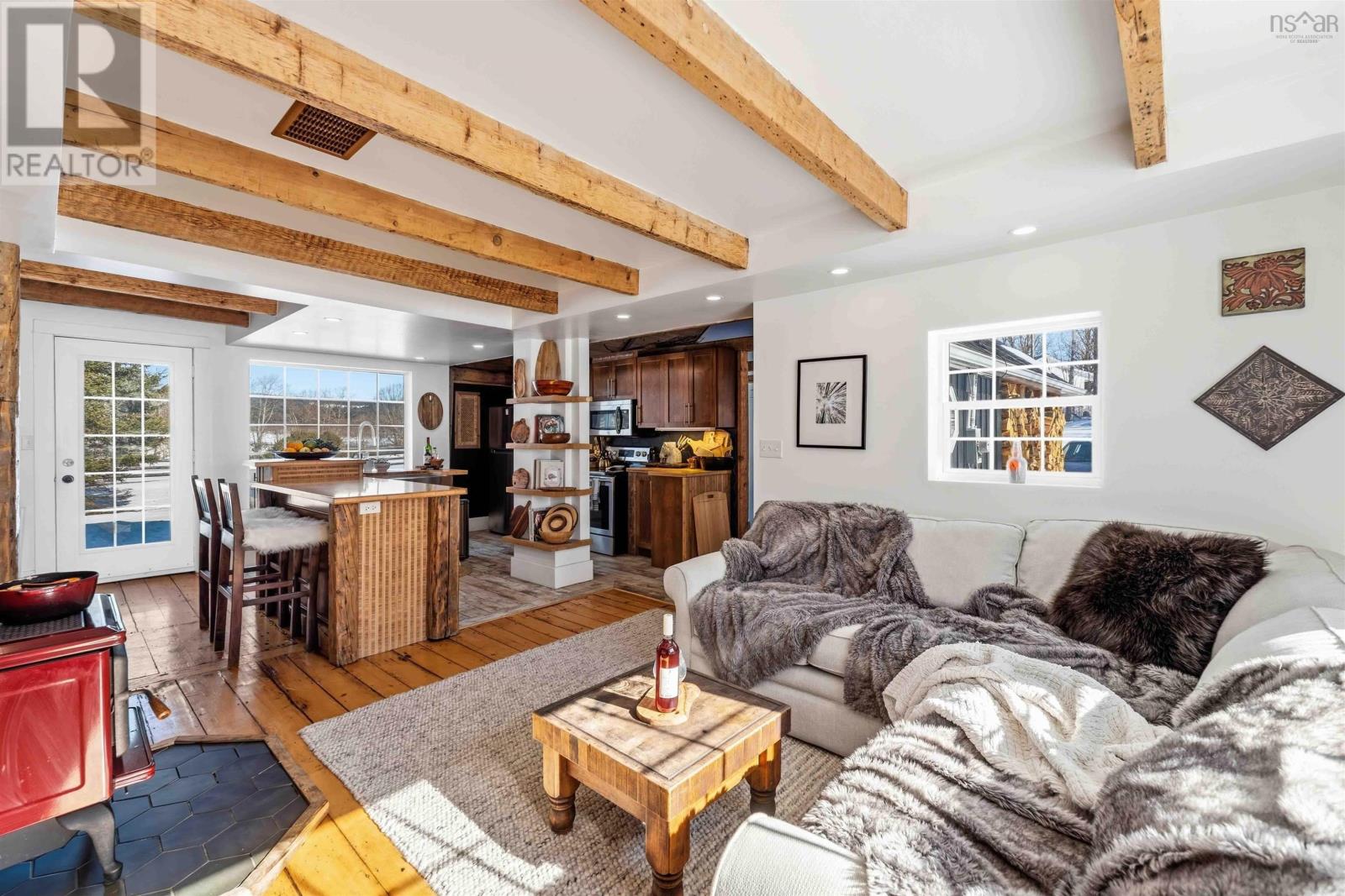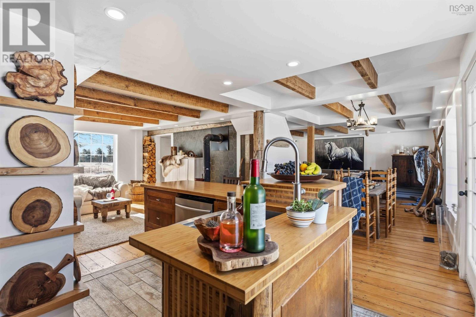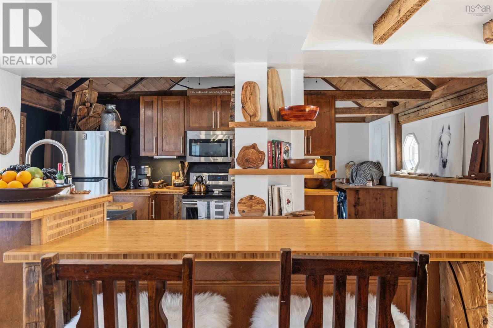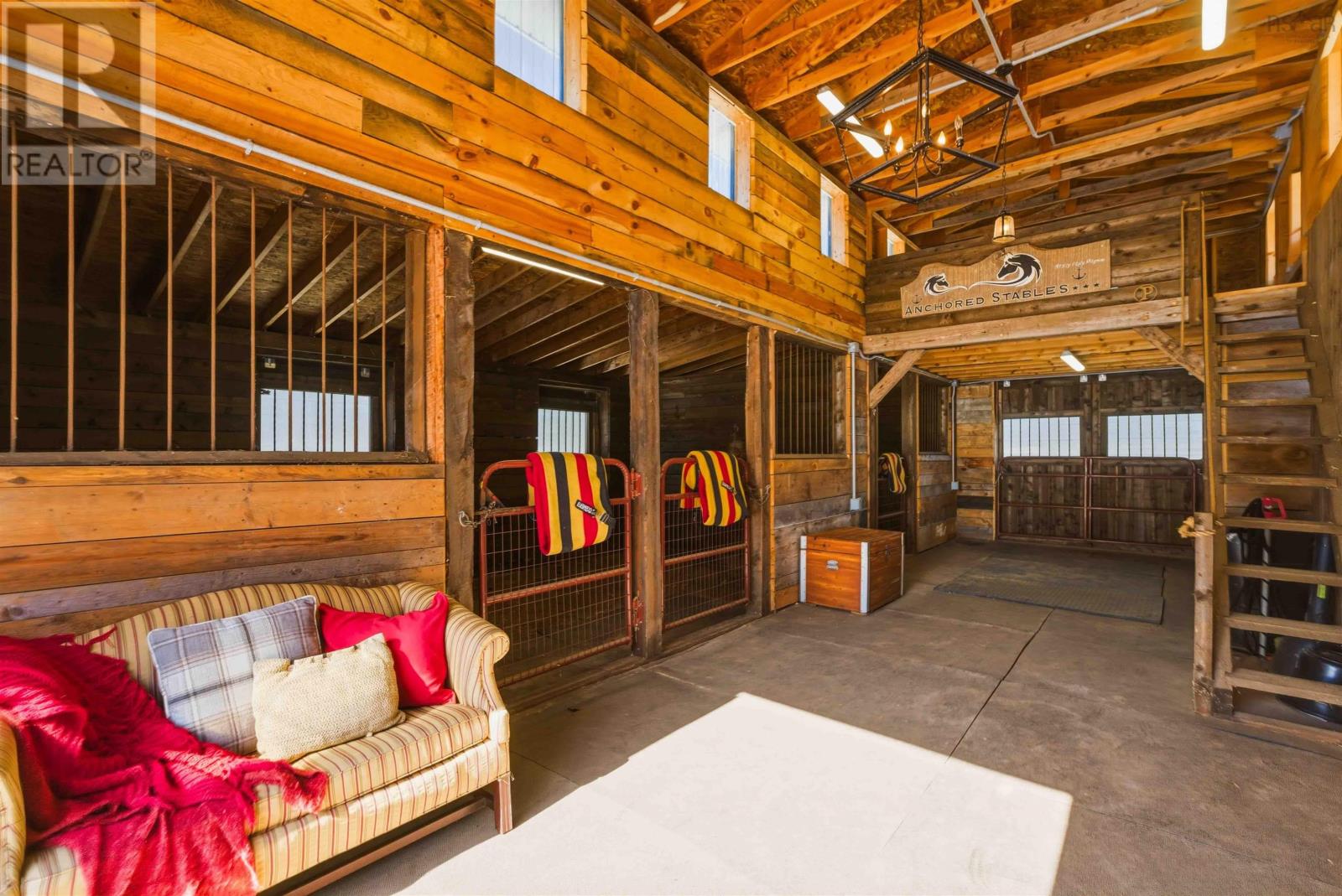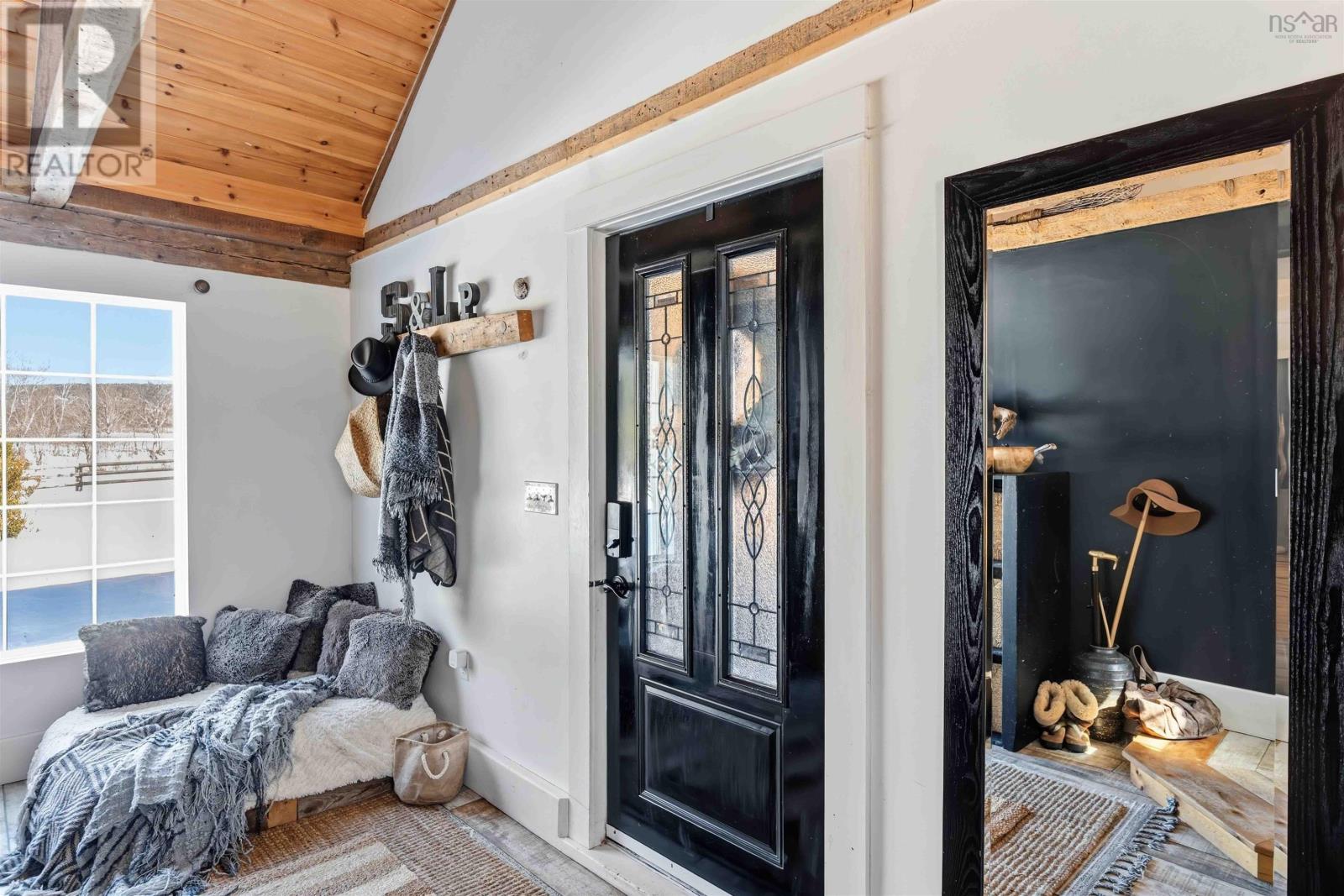 This classic New England cape cod style home has been carefully renovated to maintain its character and charm while adding warmth and comfort throughout. As you approach the property you will be drawn in by the inviting covered patio leading to the main entrance. Opening the door will reveal a large mudroom with laundry followed by an open concept kitchen/dining/living area complete with a wood stove - perfect for entertaining. A powder room, and a family room complete the main level, while upstairs you will find 3 bedrooms plus a 4-pc bath. The 1.9-acre property is fully cleared and was previously used to keep horses. The contemporary barn was constructed within the last 6 years and offers 2 large and airy horse stalls both with direct access to outdoors, one is 24 x 12 and the other is 12 x 12. The barn also includes a loft area, storage or work area, and a side shed bay. In front of the barn you will find a raised 120 x 80 sand riding ring and the former paddock behind the barn is still partially fenced and could easily be restored. A short walk to the back of the property provides a tranquil escape from everyday life where you can sit beside the little river and listen to the birds and animals chirp or enjoy the landscaped fire pit. While this property gives you that warm country feeling it is only 5 minutes away from town amenities and just 10 minutes from CFB Greenwood. (id:49203)
