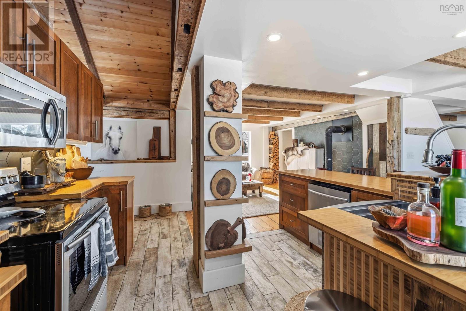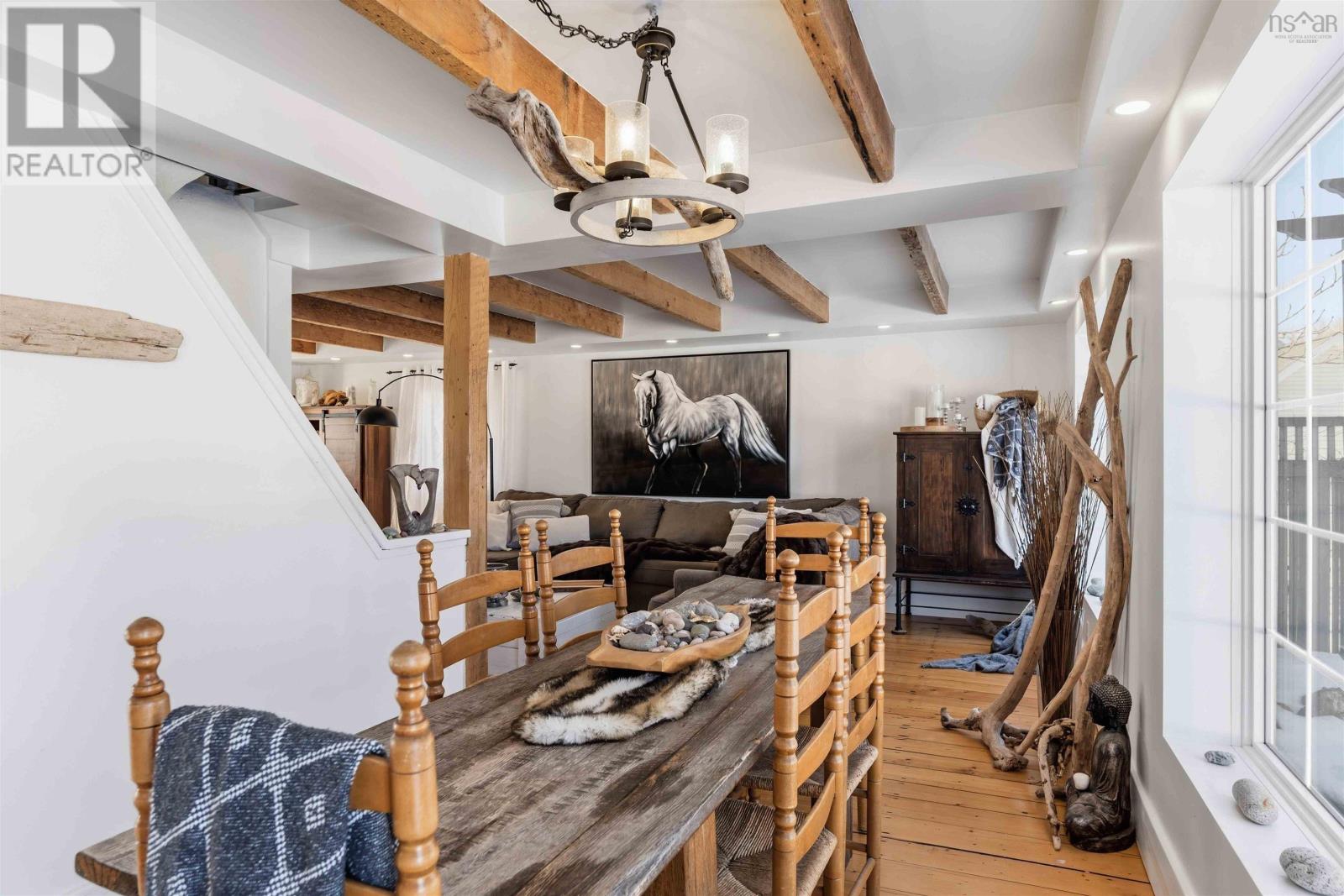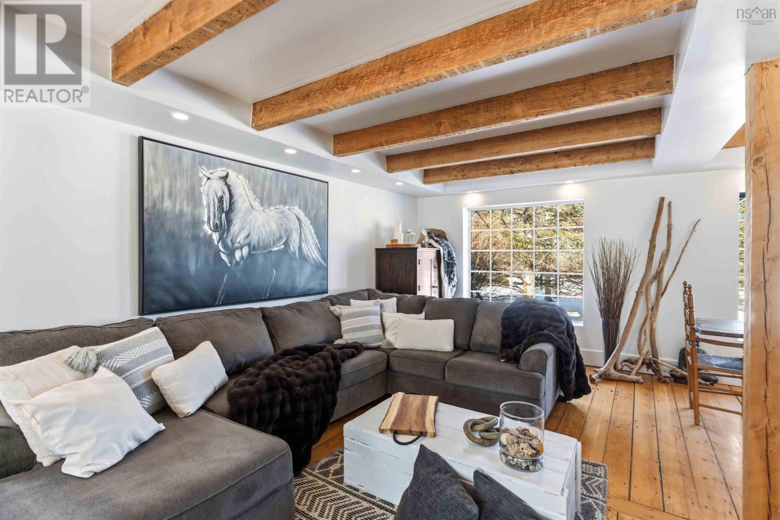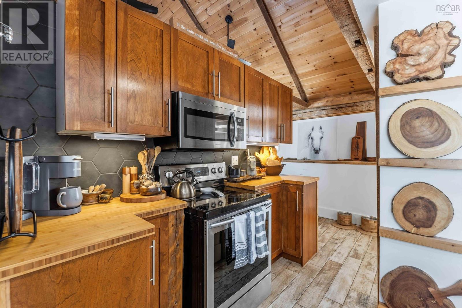 This classic New England cape cod style home has been carefully renovated to maintain its character and charm while adding warmth and comfort throughout. As you approach the property you will be drawn in by the inviting covered patio leading to the main entrance. Opening the door will reveal a large mudroom with laundry followed by an open concept kitchen/dining/living area complete with a wood stove - perfect for entertaining. A powder room, and a family room complete the main level, while upstairs you will find 3 bedrooms plus a 4-pc bath. The 1.9-acre property is fully cleared and was previously used to keep horses. The contemporary barn was constructed within the last 6 years and offers 2 large and airy horse stalls both with direct access to outdoors, one is 24 x 12 and the other is 12 x 12. The barn also includes a loft area, storage or work area, and a side shed bay. In front of the barn you will find a raised 120 x 80 sand riding ring and the former paddock behind the barn is still partially fenced and could easily be restored. A short walk to the back of the property provides a tranquil escape from everyday life where you can sit beside the little river and listen to the birds and animals chirp or enjoy the landscaped fire pit. While this property gives you that warm country feeling it is only 5 minutes away from town amenities and just 10 minutes from CFB Greenwood. (id:49203)