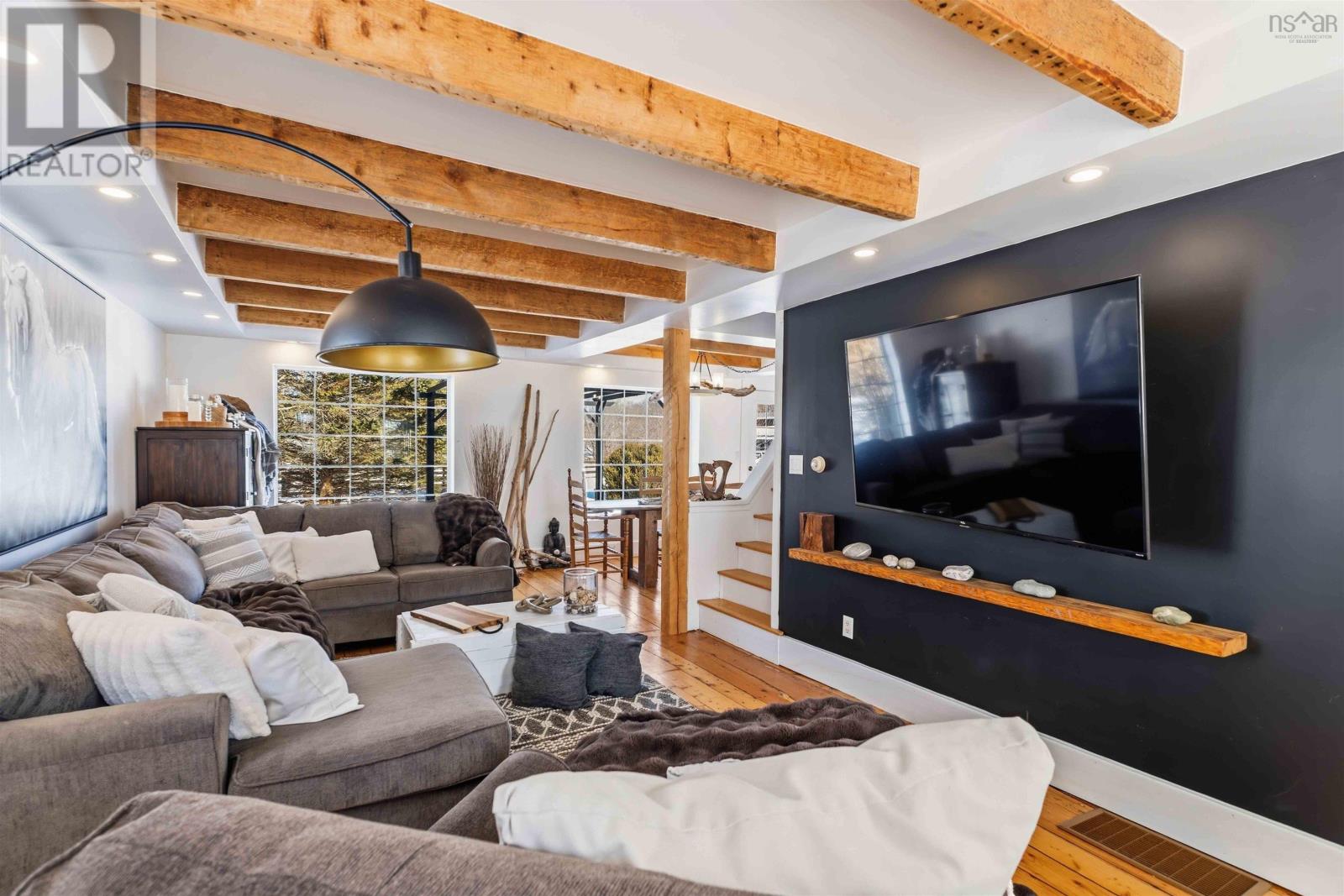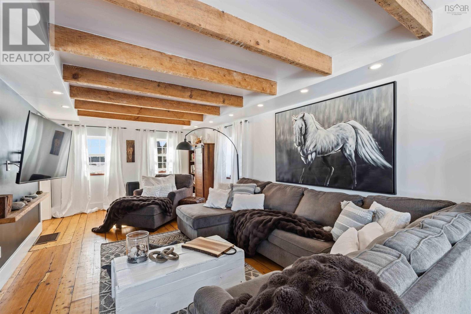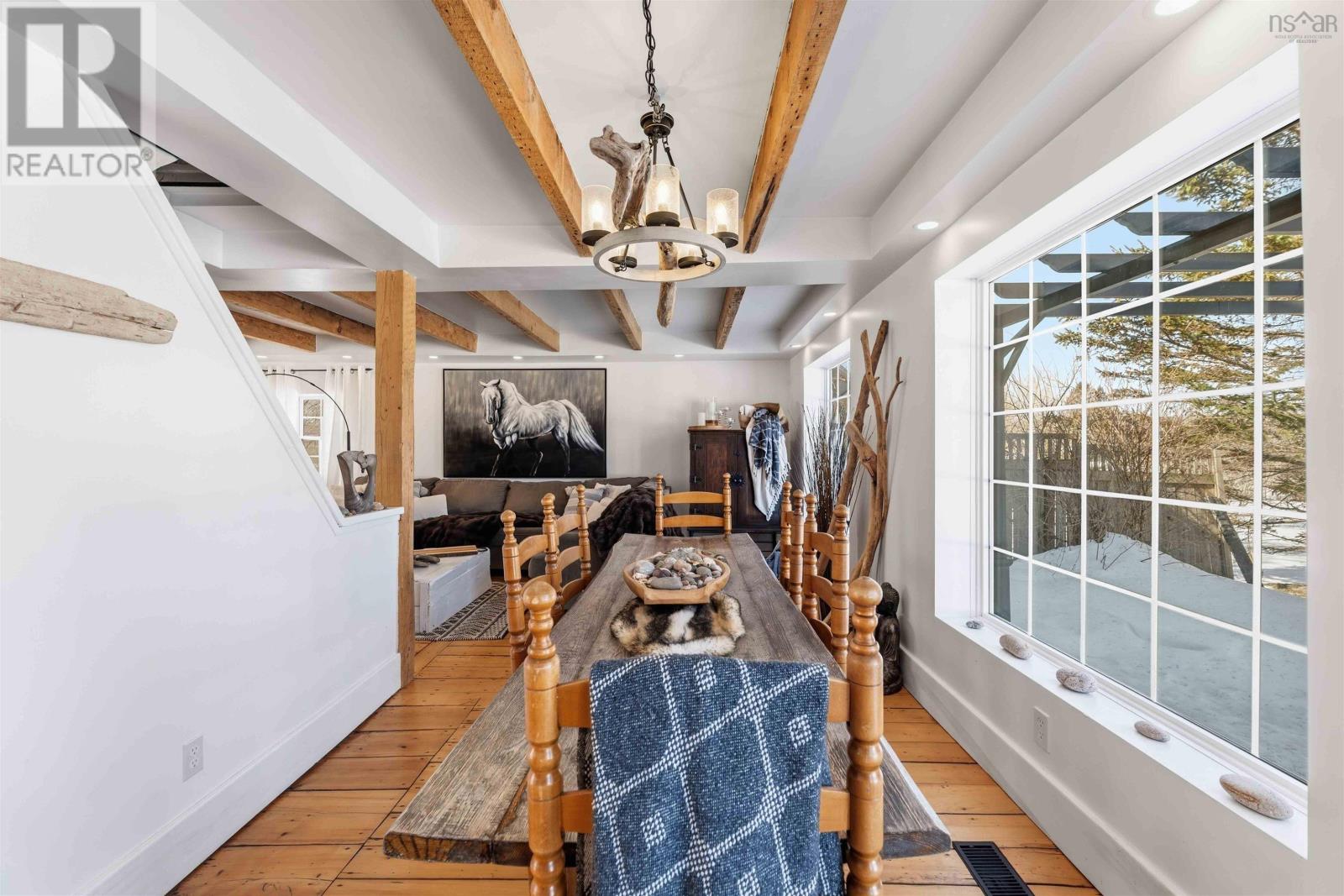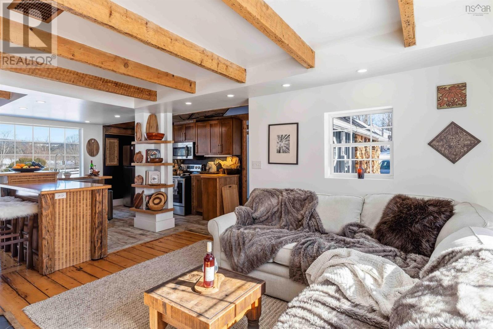 This classic New England cape cod style home has been carefully renovated to maintain its character and charm while adding warmth and comfort throughout. As you approach the property you will be drawn in by the inviting covered patio leading to the main entrance. Opening the door will reveal a large mudroom with laundry followed by an open concept kitchen/dining/living area complete with a wood stove - perfect for entertaining. A powder room, and a family room complete the main level, while upstairs you will find 3 bedrooms plus a 4-pc bath. The 1.9-acre property is fully cleared and was previously used to keep horses. The contemporary barn was constructed within the last 6 years and offers 2 large and airy horse stalls both with direct access to outdoors, one is 24 x 12 and the other is 12 x 12. The barn also includes a loft area, storage or work area, and a side shed bay. In front of the barn you will find a raised 120 x 80 sand riding ring and the former paddock behind the barn is still partially fenced and could easily be restored. A short walk to the back of the property provides a tranquil escape from everyday life where you can sit beside the little river and listen to the birds and animals chirp or enjoy the landscaped fire pit. While this property gives you that warm country feeling it is only 5 minutes away from town amenities and just 10 minutes from CFB Greenwood. (id:49203)