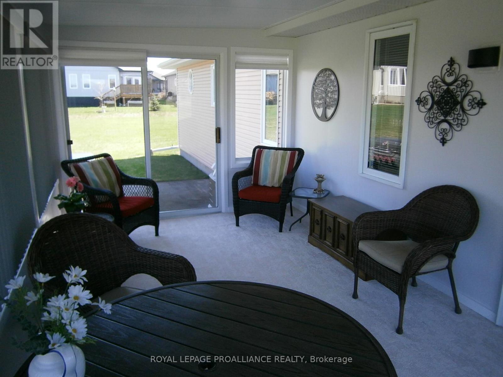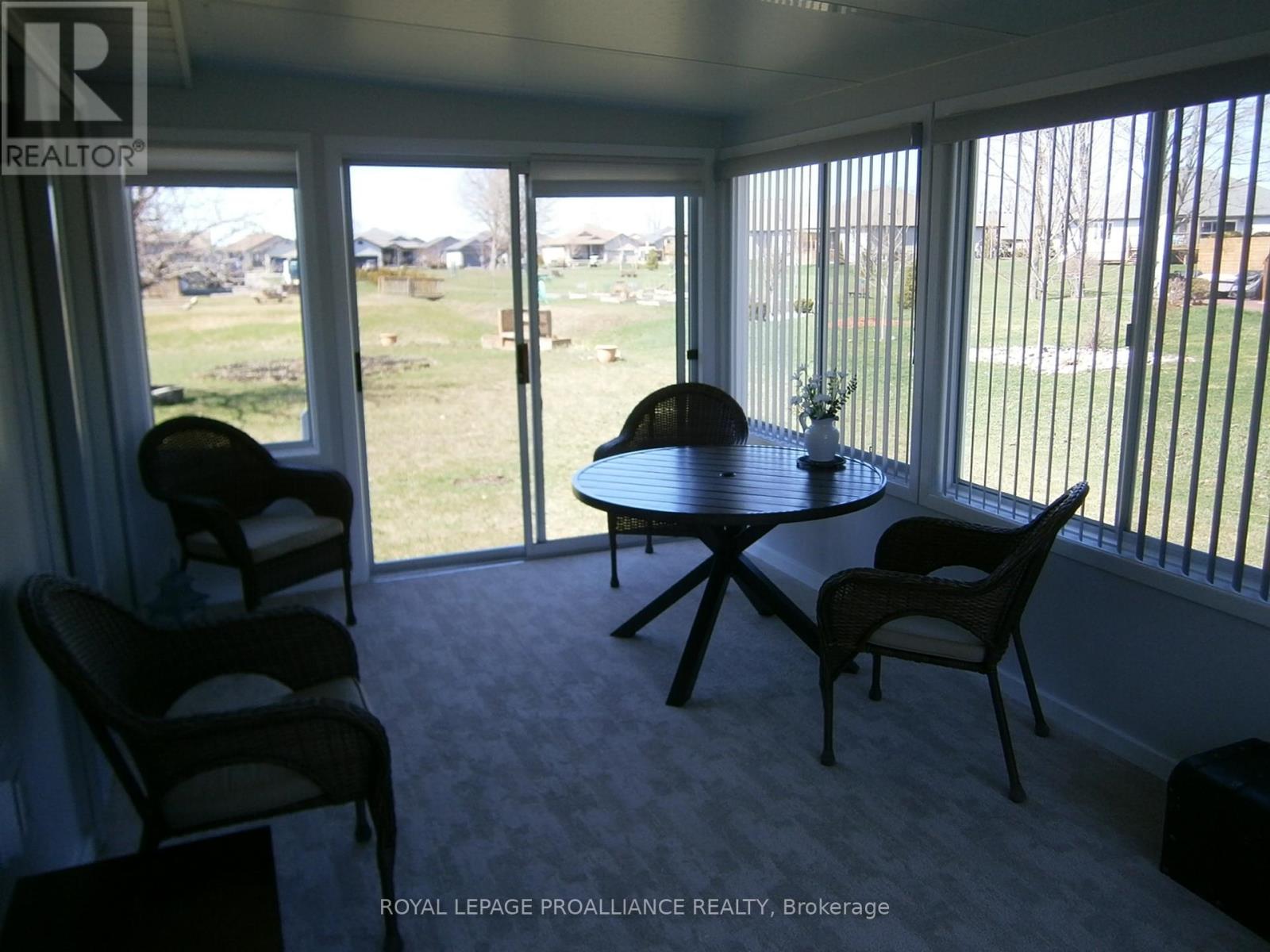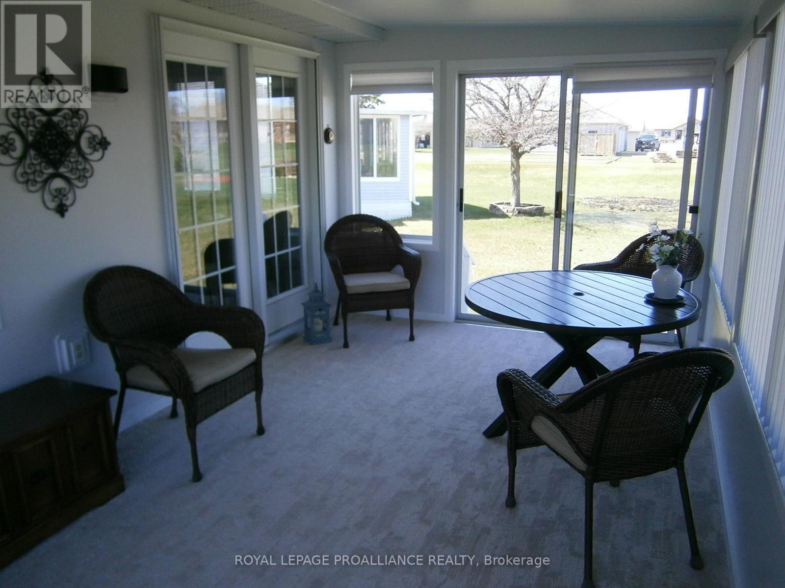 ONE OF A KIND! This home is a rare find and gem in this neighbourhood offering over 1700 square feet above grade. This charming residence boasts upgrades throughout! The updated kitchen is complete with new countertops, large functional island, stainless steel appliances (newer dishwasher installed to match), new range hood and cabinetry hardware, plus a cozy eat-in breakfast nook. Enjoy hosting in the formal dining room area or relax in the spacious living room, featuring a natural gas fireplace and large windows filling the space with natural light. Through the living room is a bright 3 season sunroom exposing to the north, west and east. The laminate wide-plank flooring and trim throughout, enhancing the homes elegance. The home includes two bedrooms: the primary suite encompasses a modern updated 4-piece ensuite bathroom, a large walk-in closet, while the second bedroom offers convenient access to the main 3-piece bathroom with a cheater style door. Additional features include updated light switches (reachable for those in a wheelchair) and outlets throughout plus a recently improved interior of the one-car attached garage. This home rests on a quiet cul-de-sac and is ideal for those seeking tranquility in an adult community. New Shingles installed in 2024. Updated sunroom interior in April 2026. Bell Fibe used amongst the neighbours. This home is located a stone's throw away from the community centre that offers an inground heated pool, tennis court, shuffleboard, lawn bowling, library, snooker, woodworking shop, and more! Walking distance to the local golf course and the Millennium Trail. Prince Edward County offers numerous wineries, beaches, restaurants and breweries. Everyone that moves to Wellington, falls in love with this community! (id:49203)