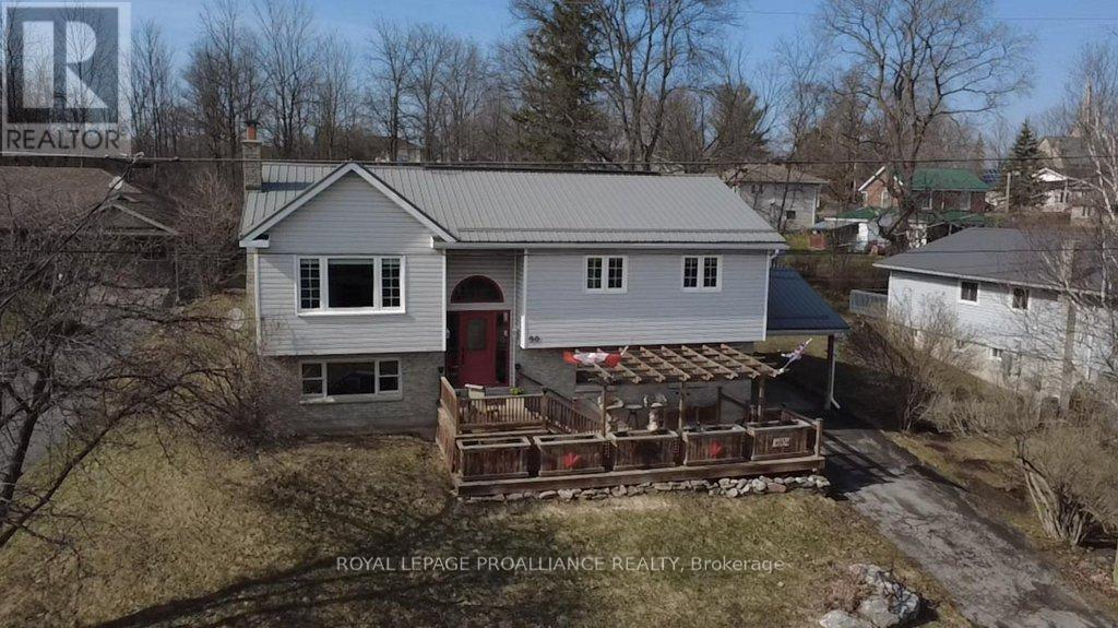 Attention Multigenerational Families or those looking for an Income Property!! This charming home sits atop a raised lot with panoramic views, on the end of a quiet dead-end road in the Village of Madoc. Ideally located near the Madoc Skate Park and minutes from Highway 7, this versatile property is perfect for families or those seeking income potential. The home features a three-bedroom main living space with the option of turning the lower level rec room into an additional bedroom. The one-bedroom income suite with its own a private entrance is ideal for rental income, in-laws, or guests. The suite can also be easily reintegrated into the main home if more space is preferred for its new family. Freshly painted throughout with light-toned hardwood flooring throughout the main living area and three bedrooms, and new flooring in the kitchen. The bathroom has also been fully updated with new tile and vanity. With a large spacious backyard, carport, backyard shed with power, a large front deck, and a brand-new back deck, outdoor living is seamless. All appliances are included in the main home and income suite: built-in value for the next owner. This property is a must-see, offering proximity to ATV trails, West Highland Golf Course, Moira lake for great fishing for the outdoor enthusiasts. Local schools and the wonderful shops and restaurants located in the downtown area; make this the perfect location to raise a family. A must see in Madoc! (id:49203)