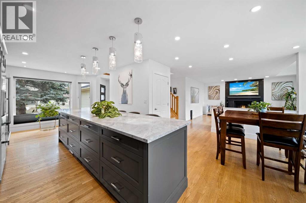 Beautifully updated and meticulously maintained home offering exceptional value with extensiveupgrades throughout the years. The main floor was fully remodeled, featuring a modern open feelwith flat ceilings, recessed lighting, custom cabinetry with soft-close drawers, and elegant dolomitegranite countertops. The kitchen is equipped with premium appliances including a gas range,convection oven/microwave, refrigerator, dishwasher, and wine fridge—perfect for both everydayliving and entertaining.Enjoy the warmth of refinished oak hardwood flooring and a stunning living room entertainment wallwith floor-to-ceiling tile and a cozy fireplace. Comfort is enhanced with a high-efficiency furnace andcentral air conditioning.Major exterior and mechanical updates provide peace of mind, including newer double-panewindows, upgraded insulation, and asphalt shingles. Bathrooms have been refreshed with updatedfixtures and low-flow toilets, and the lower level features a new egress window—ideal for addedfunctionality.Step outside to a beautifully landscaped front yard complete with a water feature, along with fruittrees including pear, sour cherry, and grape in the private backyard that offers additional enjoyment witha wood-burning fire pit and hot tub.Additional highlights include new vinyl plank flooring in the flex area, updated doors,stylish window coverings, and a painted garage door.This is a move-in-ready home combining thoughtful upgrades, comfort, and charm—inside and out. (id:49203)