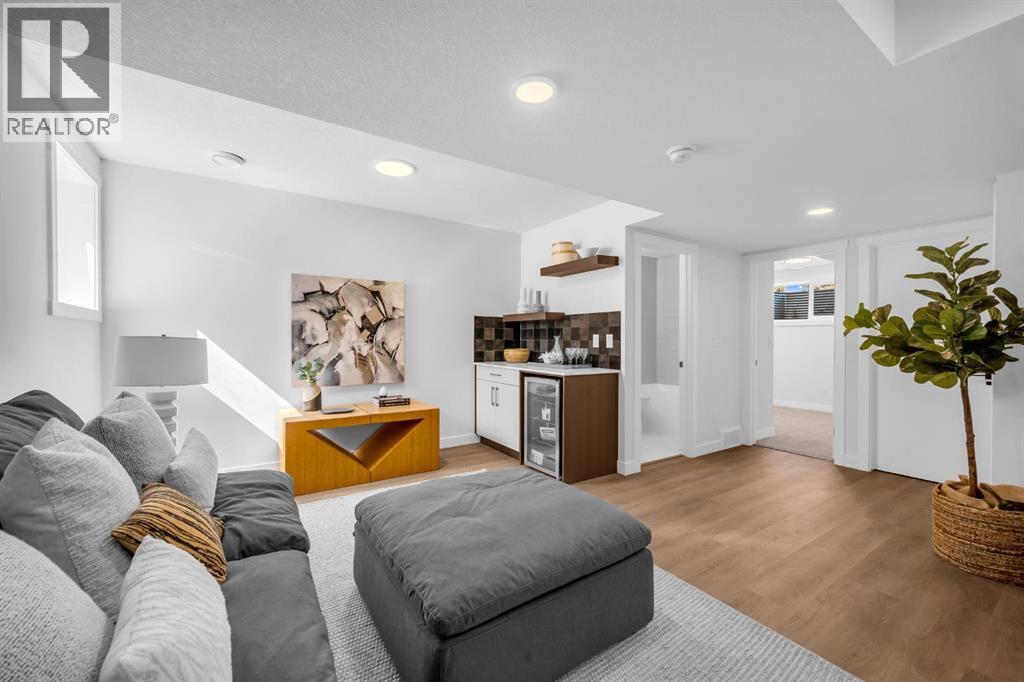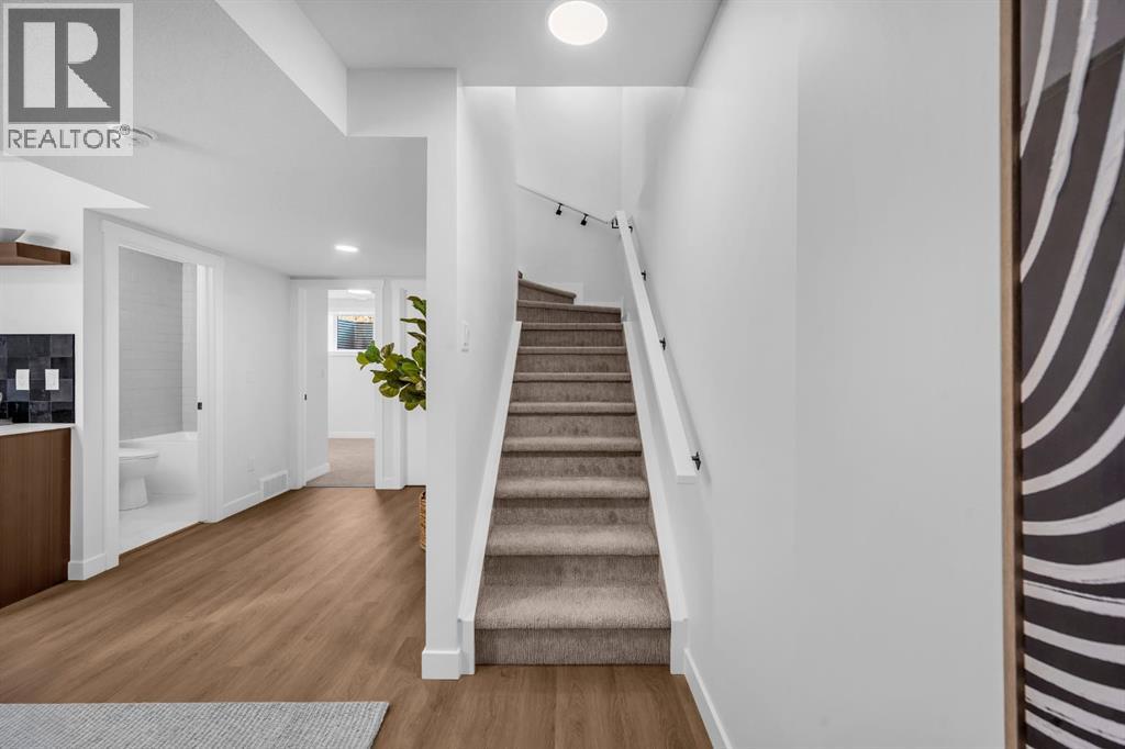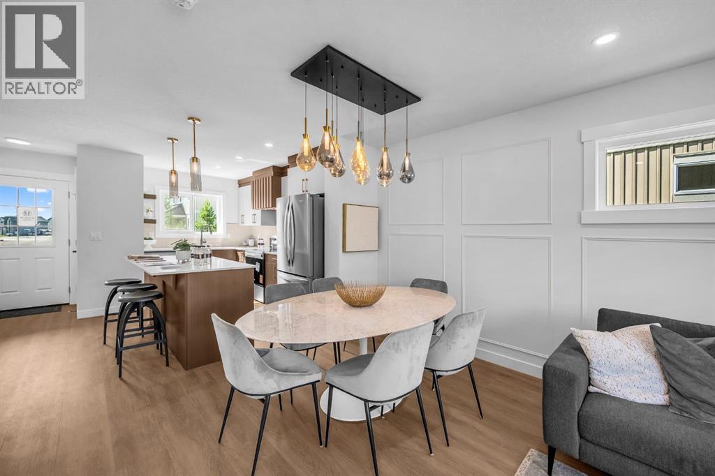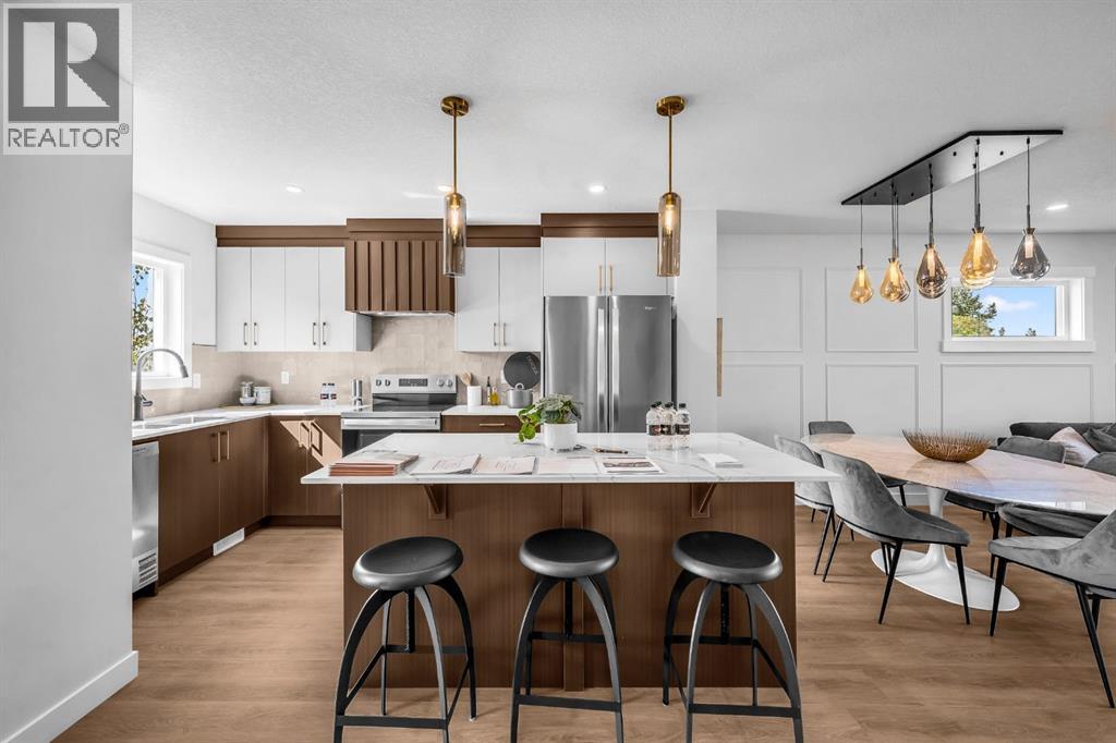 **NO CONDO FEES FOR 2026** Welcome to 901 Clover Road – a newly built, fully finished END UNIT townhome that perfectly blends modern design, quality craftsmanship, and thoughtful functionality. Offering over 1575 sq ft of fully developed living space, this stunning two-storey features 4 bedrooms and 3.5 bathrooms, making it ideal for young professionals, investors or families seeking extra space and comfort. Step inside and you’ll be greeted by 9-foot ceilings, a bright and open layout, and stylish finishes throughout. The main floor features LVP flooring, numerous LED pot lights, fireplace and a beautiful kitchen with quartz countertops, high-gloss cabinetry, subway tile backsplash, and Whirlpool stainless steel appliances. The under mount sink with a pull-spray faucet and a convenient water line to the fridge add both elegance and practicality. Upstairs, you’ll find a spacious primary suite complete with its own 3 pc en suite and walk in closet, 2 additional bedrooms, a main 4-piece bathroom, and stacked laundry room for added convenience. All bathrooms feature quartz counters, under mount sinks, ceramic tile floors and walls, and comfort-height toilets. The fully finished basement expands your living space with a cozy recreation area, a custom dry bar with space for a mini bar fridge, an additional bedroom, and a full bathroom—perfect for guests, entertaining, or a home office setup. Additional highlights include a high-efficiency furnace and 50-gallon hot water tank. Outside, the home showcases Smartboard siding, and a decorative fiberglass front entry door. Large private concrete patio equipped with a gas line rough-in for easy summer BBQs This home also includes two assigned parking stalls, and a low-maintenance lifestyle with monthly condo fees of $305.89. This move-in-ready home combines modern design, energy efficiency, and functional living in a peaceful Carstairs community — the perfect place to call home. (id:49203)