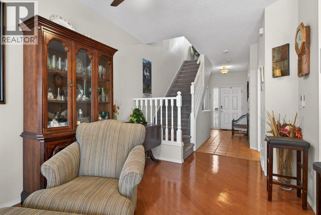 $364.28 MonthlyExperience the perfect blend of executive style and low-maintenance living in this stunning 2-storey townhome. Featuring a bright, open-concept floor plan, this home is drenched in natural light thanks to expansive windows and a coveted walk-out basement. The main floor offers a seamless flow from the spacious kitchen to the inviting living area—ideal for entertaining. Retreat upstairs to a generous primary suite or head down to the fully developed lower level, perfect for a home gym or media room. Situated just steps from the prestigious Hamptons Golf Club, tennis courts, and walking paths. Pride of ownership shines with extensive upgrades: new furnace, A/C, hot water tank & central vac; Bosch appliances (stove, dishwasher, microwave hood fan) + Samsung fridge, new kitchen backsplash & garburator, steam washer/dryer, all toilets replaced, pro-installed blinds throughout, metal shelving in garage, pantry, closets & storage, front keypad entry, hardwood and tile flooring on the main floor, fresh carpet on stairs/bedrooms, new lino in upstairs baths; ceiling fans in primary & living room. Move-in ready excellence! (id:49203)