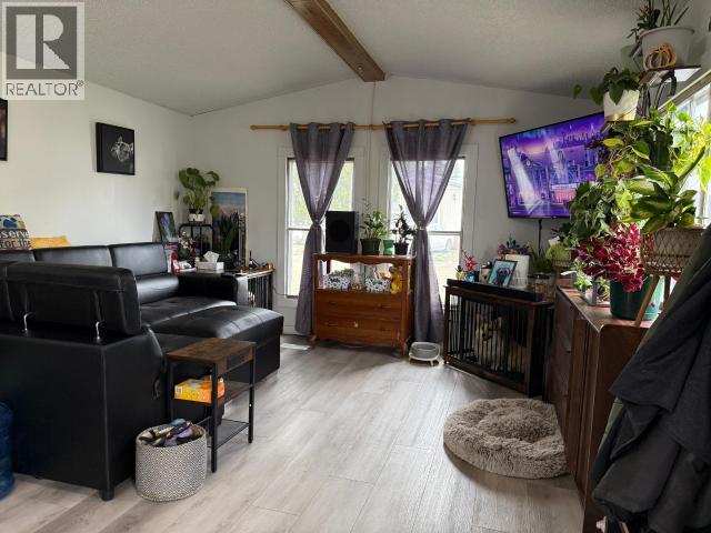 1987 Moduline with 2 bedrooms (was 3) plus 1 full bath with "cheater" ensuite door. Vault ceiling over open living area. Recent upgrades include flooring, paint and totally new peninsula kitchen including new upscale appliances (can operate from app), cabinets & counters, plus bathroom, hot water tank and oil tank (2025). Mobile has metal roof. Truck gate to access fully fenced & landscaped yard. Pad rent $650 if paid early. Buyers must be approved by park. Pets allowed with permission. Payments approximately $2K monthly with approved credit, 5% down amortized over 20 years. Quick possession. (id:49203)