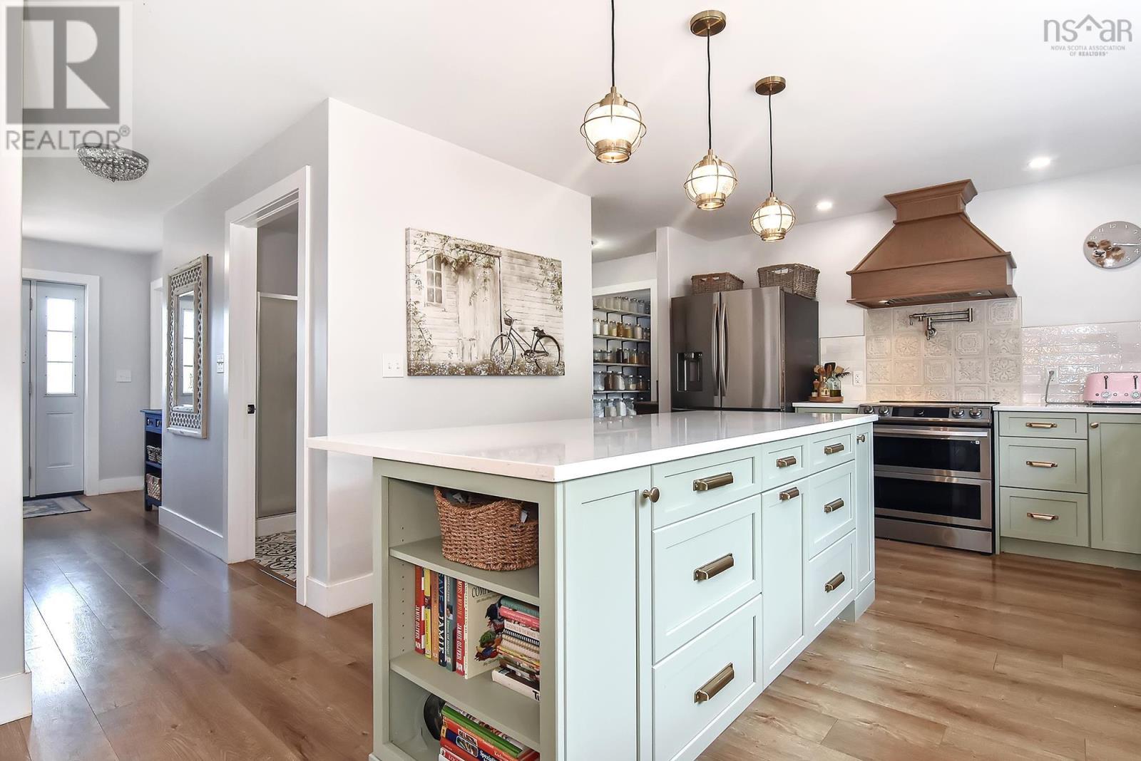 Rare opportunity and a truly lucky find! Own this private oceanfront estate less than an hour from Halifax with a stress-free, traffic-free commute. Set on 72 breathtaking acres along the Minas Basin; home to the worlds highest tides.This five-year-old custom home offers the perfect balance of accessibility and seclusion. The property is GR ZONED, meaning the possibilities are truly skys the limit, allowing for additional dwellings, home-based business use, future development, or income potential. With no neighbouring homes in sight, youll enjoy unmatched privacy and sweeping coastal views. Finished on three levels with 3,524 sq ft of living space, the home was built for comfort and durability, featuring reinforced concrete floors and an innovative exterior wood boiler system delivering efficient in-floor heat throughout both the home and the detached shop, requiring just one daily load while keeping the fire safely away from the residence. There is also excellent potential to expand toward off-grid living with solar. The main floor showcases an open-concept kitchen with oversized island, custom dining area with built-in bench, spacious living room ideal for entertaining, private office/den, full bath, walk-in pantry, mudroom with second entrance, and a versatile bedroom currently used as a fitness room. Upstairs offers a generous primary suite with walk-in closet and ensuite, two additional bedrooms, full bath, and dedicated laundry room. The lower level includes a large rec room, fourth bedroom, full bath, and an impressive craft or hobby space. The fully insulated, steel-framed 35 x 60 shop features in-floor heat and its own 200 AMP serviceideal for tradespeople, entrepreneurs, hobbyists, or future conversion to additional living space. A private path leads to the waters edge and your own oceanfront viewing area, perfect for taking in the dramatic tides. A truly one-of-a-kind coastal property combining privacy, flexibility, and long-term valu (id:49203)