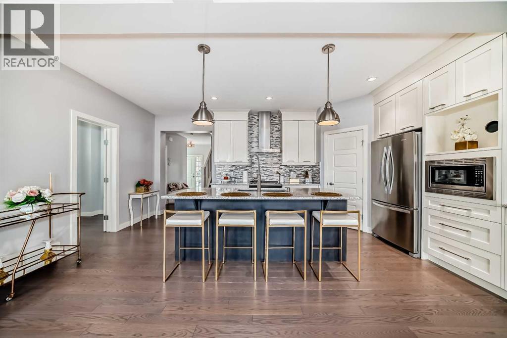 Stunning Calbridge Show Home – the Daytona 2 model with a triple tandem heated garage, located in the highly sought-after and family-friendly community of Legacy. This exceptional 2-storey home stands out with its thoughtful design, premium finishes, and over 3,000 sq. ft. of beautifully developed living space, including the fully finished basement with 9-ft ceilings. The main floor welcomes you with a spacious foyer leading to a bright open-concept layout filled with natural light. The living room features large windows and a sleek gas fireplace with stainless surround, creating a warm and elegant space for relaxing or entertaining. A main floor den/office provides the perfect setup for those working from home. The entire main level is enhanced with gorgeous wide-plank engineered flooring and upgraded lighting throughout. The chef-inspired kitchen is sure to impress with its large quartz island, ceiling-height custom cabinetry, stainless steel appliance package, quartz countertops, and a convenient walk-through pantry. The adjoining dining area is perfect for family gatherings, while the mudroom helps keep everything organized. A 2-piece powder room completes the main level. Upstairs, you’ll find a grand bonus room that’s ideal for movie nights or a play area. This level includes four generously sized bedrooms, a 5-piece main bathroom with quartz double vanity, and a convenient upper-level laundry room. The primary suite is a true retreat, featuring a large walk-in closet with built-in shelving and a luxurious 5-piece ensuite complete with an extended quartz vanity, soaker tub, and separate shower. The fully developed basement is an entertainer’s dream, offering a spacious family room with a full wet bar, granite countertops, built-in dishwasher, bar fridge, and matching cabinetry. There’s also a custom wall bed for guests, a 3-piece bathroom, and oversized windows that flood the space with natural light. Step outside to a maintenance-free composite deck with temp ered glass railing overlooking the fully fenced backyard. The stamped concrete patio provides additional space for outdoor entertaining, and the paved back lane offers privacy and easy access. Additional features include central air conditioning, a heated triple tandem garage with overhead gas heater, water softener, and a 50-gallon hot water tank. Beautiful curb appeal is showcased with Hardie board siding and stone accents. This exceptional home is ideally located close to all amenities—schools, parks, playgrounds, major shopping centers, and just minutes to Stoney Trail for easy commuting. A stunning and fully finished Calbridge show home that truly has it all—luxury, comfort, and location. Don’t miss your opportunity to make this beautiful Legacy home yours! Book your private showing today! (id:49203)