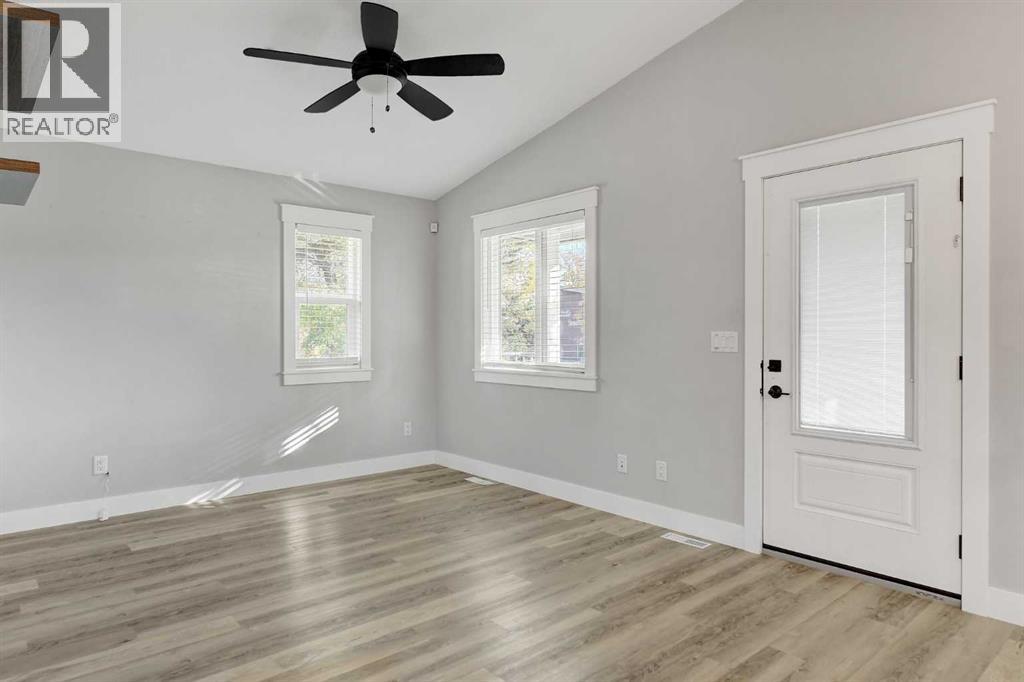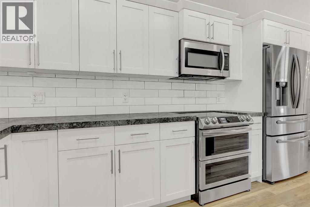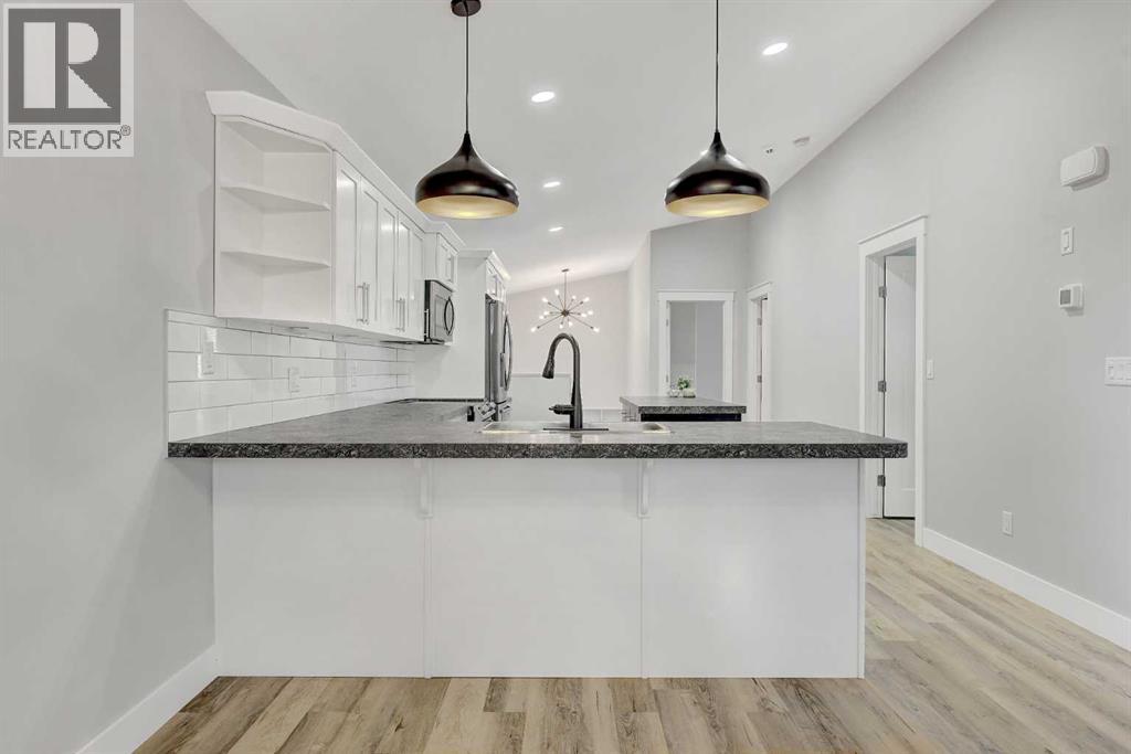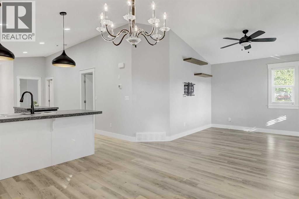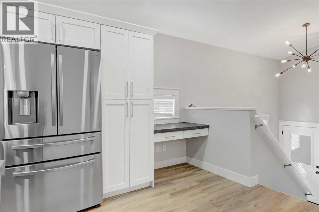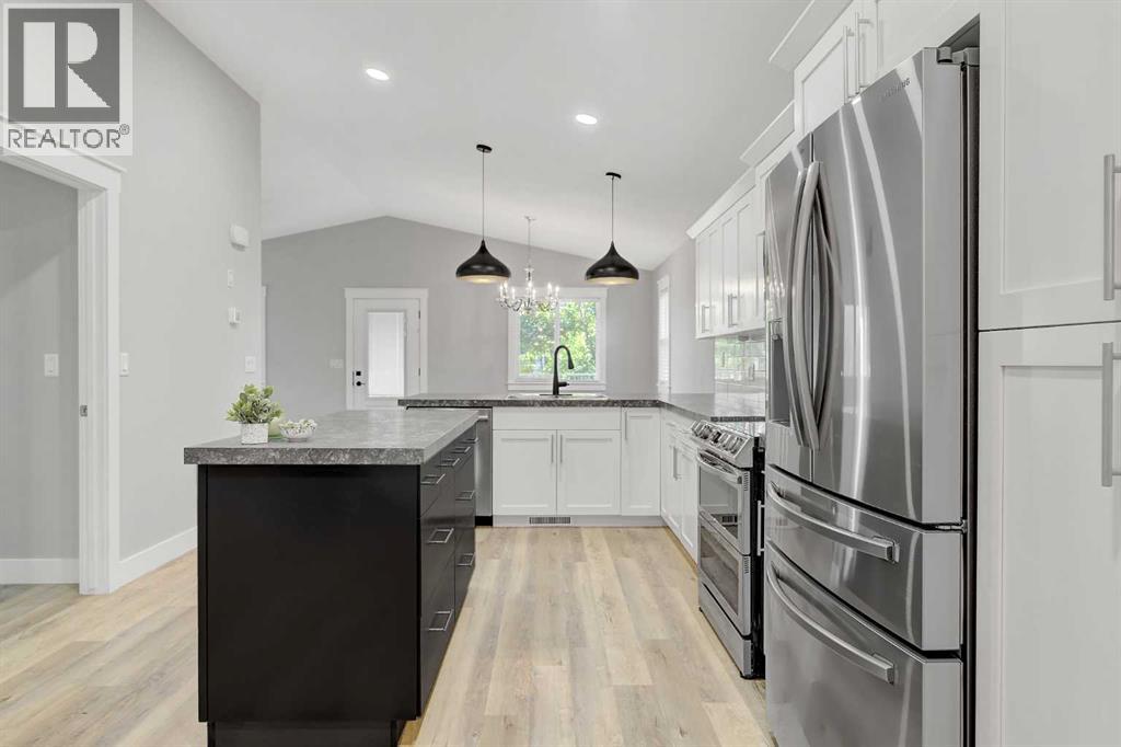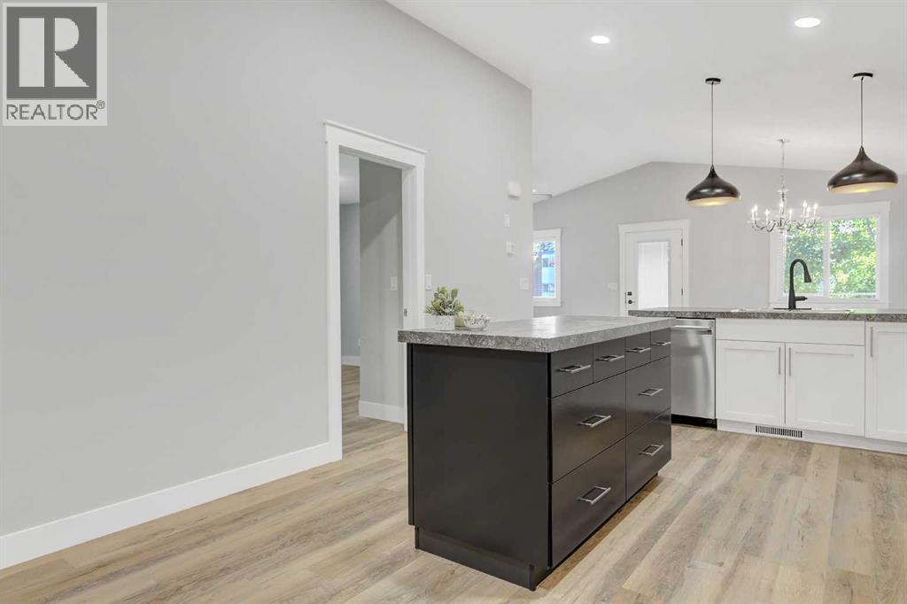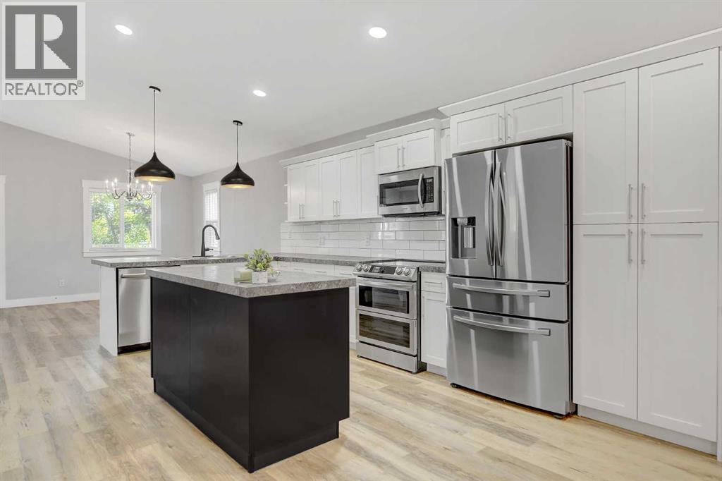 Experience the appeal of a quality well built home that looks and feels brand new! This immaculate property boasts current colors and decor, trendy lighting and modern finishes throughout. Designed for efficiency, it features triple pane windows, R50 attic insulation, and a high-efficiency furnace. The bright, open floor plan has vaulted ceilings, and durable vinyl plank flooring. The custom kitchen is a chef's dream with white shaker soft-close cabinets and drawers, a movable grey island with pull-up seating, built-in desk, subway tile backsplash, and high-end stainless steel appliances: a Samsung double convection oven, Bosch dishwasher, and convection microwave range hood. This spacious residence offers 4 bedrooms (2 up/2 down) and large 3 full bathrooms The large primary suite has a generous closet with custom organizers and a full ensuite. Built-in shelving and custom blinds are featured throughout. The bright, finished basement includes a large living space, high ceilings, large windows, laundry room with extra storage, and a finished play space under the stairs. Enjoy the convenience of a central location within walking distance to all amenities. Concrete parking for 4 vehicles or long enough for RV Parking. The single finished garage is roughed in for heat, and the tiled front entry provides a comfortable welcome. This fine property is ready for immediate possession and will look and feel newer than anything else you can find in the price range. (id:49203)