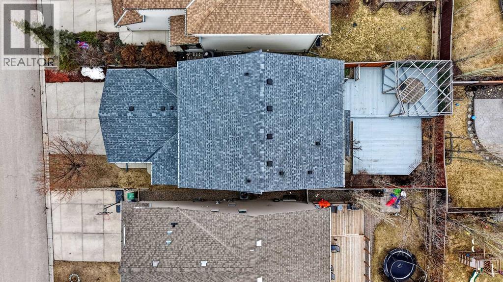 This splendid 3 bed/2.5 bath large family home has been lovingly maintained and updated through the years by original owner! A wide and inviting entrance leads to an expansive main floor with vaulted ceilings, front living room & formal dining, and updated kitchen featuring trendy two-tone cabinetry, quartz counters, tile flooring and stainless steel appliances including high-end gas cafe-style range. Corner sink is surrounded by windows and large island provides ample preparation space and built-in wine rack while corner pantry offers tons of storage. Newer hardwood flows throughout main floor including the MAIN FLOOR OFFICE and back Family room. This cozy family space features a gorgeously updated stone corner gas fireplace and large south facing windows! The main level is completed by a 2 pc bathroom and MAIN FLOOR LAUNDRY, big enough for a mud-room combo, with access to the insulated and over-sized garage (wall heater included!). Gorgeous custom staircase leads to upper floor and to French door entrance to the king-sized primary bedroom, large enough for a seating area, and over-sized walk-in closet! Ensuite has been updated with new vinyl tile including walls around separate soaker tub, new glass shower door, quartz counters, and built in storage shelves! Secondary bedrooms are of generous size, as big as many primary bedrooms! They share an updated full bathroom with full vanity (both drawers and cupboards!) and plenty of quartz counter space! Other upgrades include NEW ROOF & SIDING/one side of house (2025), NEW carpet (2026) on stairs and upper hallways, New Vinyl Tile in Full Bathroom and Ensuite (2026) New furnace (2023) with eight years warranty, H2O (2021), A/C with new motor and fan coil. Other upgrades and features include 9' ceilings, niches, custom office wall decor, New Front Door (2026), Newer Lighting, Toilets, Sinks & Faucets and New Garage Door! The undeveloped basement offers ample opportunities! Note: the door envelope at the bottom of the st airs is removable (non-load bearing) and can be removed for expanded development options. Lots of room for another large family space, bedroom, den and (roughed-in) full bathroom. Newer 2 Person Sauna in basement also included. Backyard has an amazing multi-level deck construction including a 10 person cedar hot tub (Canhot Tubs), pergola and loads of entertaining space - lawn maintenance free! Plus, a dedicated Dog Run with stylish wrought iron gate! This is the original Evanston home - close to the creek, walking paths and bridge to all kinds of shopping amenities! 5 minute walk to Kenneth D. Taylor School (gr.1-6). Quiet mature street minutes to Stoney Trail commute, your new home is calling! (id:49203)