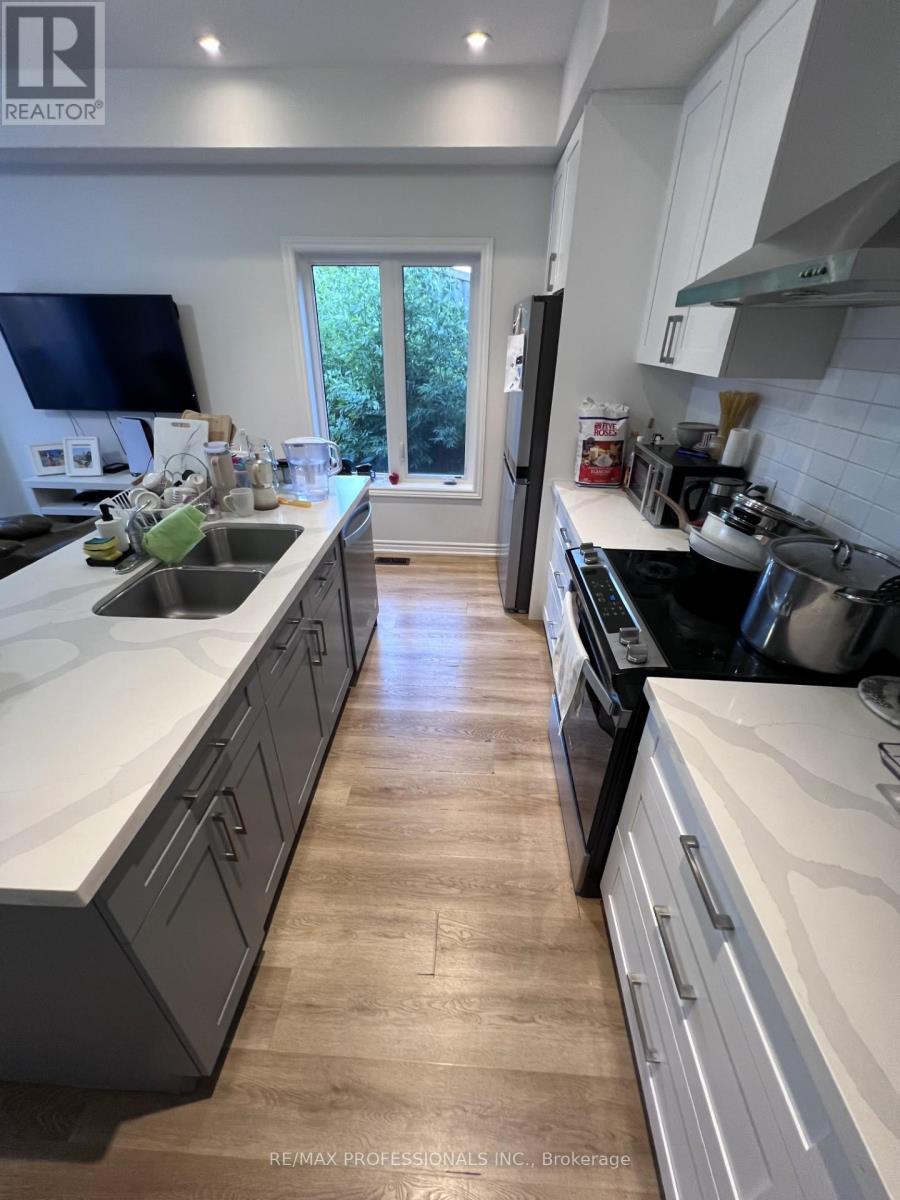 A beautiful, bright, and spacious end unit feels more like a semi than a typical townhouse with south-facing windows along the side, and no building beside you. With sunny south and west exposures, there's a ton of natural light streaming in. The open-concept main floor is perfect for modern living. The Living Room boasts a lovely west-facing patio. The gourmet kitchen features a Juliette balcony, south and east-facing windows, pot lights, ceramic backsplash, laminate floor, stone countertops, stainless steel appliances, and a breakfast bar for 4, making it an ideal space for both cooking and entertaining. The above-ground Lower Level can be an office, bedroom or Family room and walks out to your outdoor space, which is perfect for relaxing, barbecuing, or unwinding after a long day. Upstairs are 3 spacious bedrooms, including a Primary with a full ensuite and east/south windows. Convenience is key with second-floor laundry as well as a huge linen closet! Direct garage access from the lower level. Driveway is long enough to fit 2 smaller cars tandem, or 1 large car. Located in the desirable downtown Brampton, you're just a short walk from shops, groceries, public transit and the GO train, making commuting a breeze. This home is beautifully built with high-end finishes and looks as if it's brand new! Bright, immaculate, and move-in ready, it's the perfect space for a large extended family or someone with in-laws. Ideal for tenants who appreciate cleanliness and are picky. (id:49203)