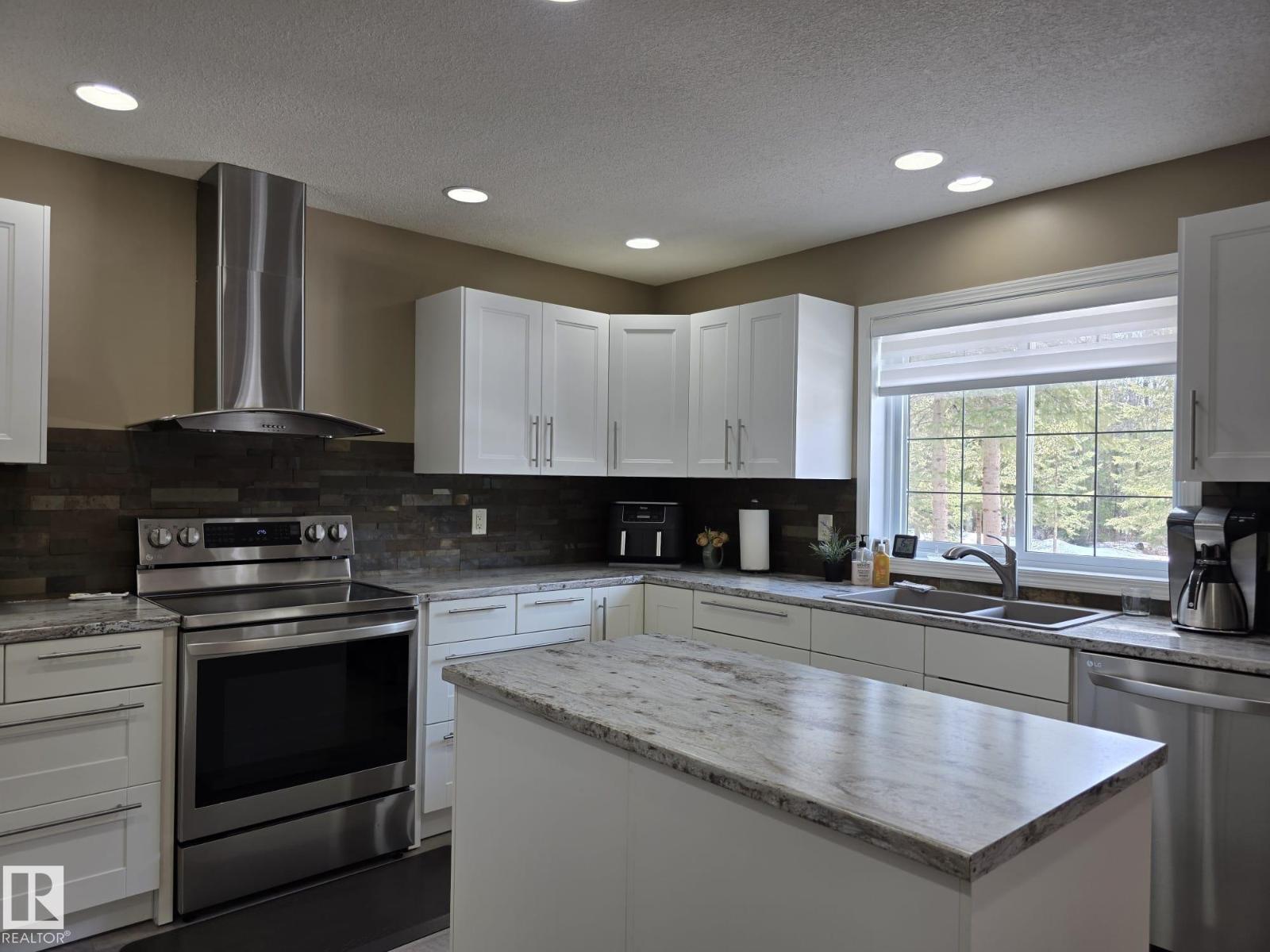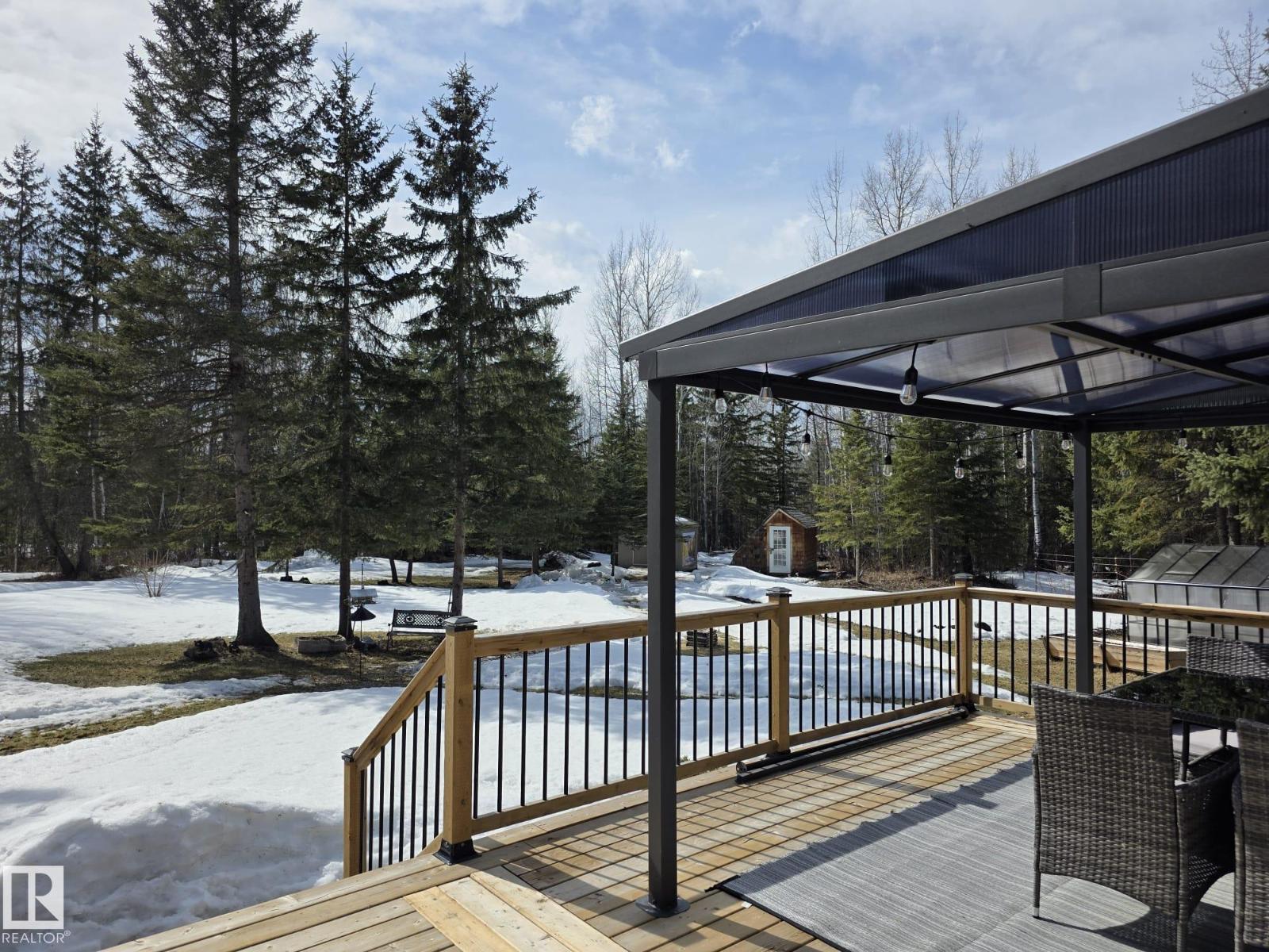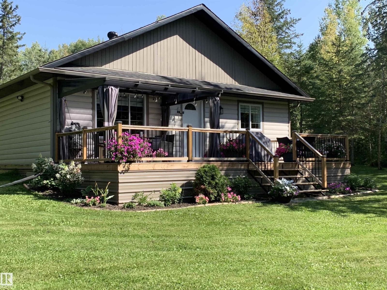 Your private retreat awaits on this fully fenced, landscaped & secluded 4.79 acre property. This extensively updated 2009, 3 bed, 2 bath bungalow is move-in ready & shows like new. The open concept kitchen features stainless steel appliances, newly added upper cabinetry, updated countertops & features a large island. Enjoy new flooring, fresh paint, & updated trim throughout, along w/ fully upgraded bathrooms. Step outside to a freshly painted exterior w/ a new deck that overlooks the picturesque yard. The property includes two small sheds, 1 large storage shed, a large garden, fire pit area, & a brand new double detached garage that's insulated, features two 8x10 overhead doors, & is wired for 220 w/ a 60 amp breaker. This acreage is incredibly peaceful and only a 25 minute drive South of Drayton Valley. (id:49203)