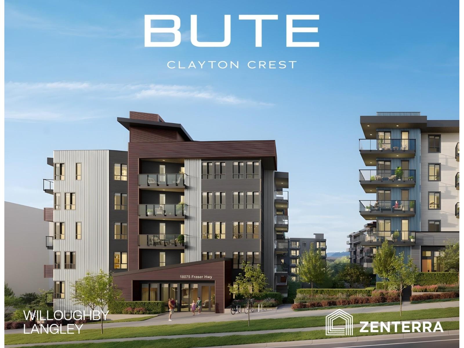 $328.55 MonthlyIntroducing Bute by award-winning Zenterra Developments in the heart of West Clayton! This BRAND NEW condo is just 3 blocks to the future SkyTrain station with easy access to Highway 1. Enjoy premium amenities including a rooftop patio with firepits, lounge seating & BBQs, community gardens, games room, co-working space, party room & fitness centre. This home features full-size stainless steel appliances with 5-burner gas range, 9' ceilings, A/C, gas BBQ hookup, storage locker & 1 parking stall with EV rough-in. Est. completion Spring 2028. Why buy used when new is priced this well? (id:49203)