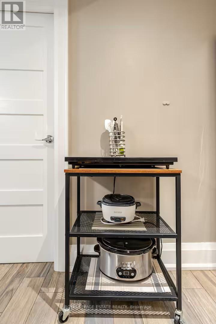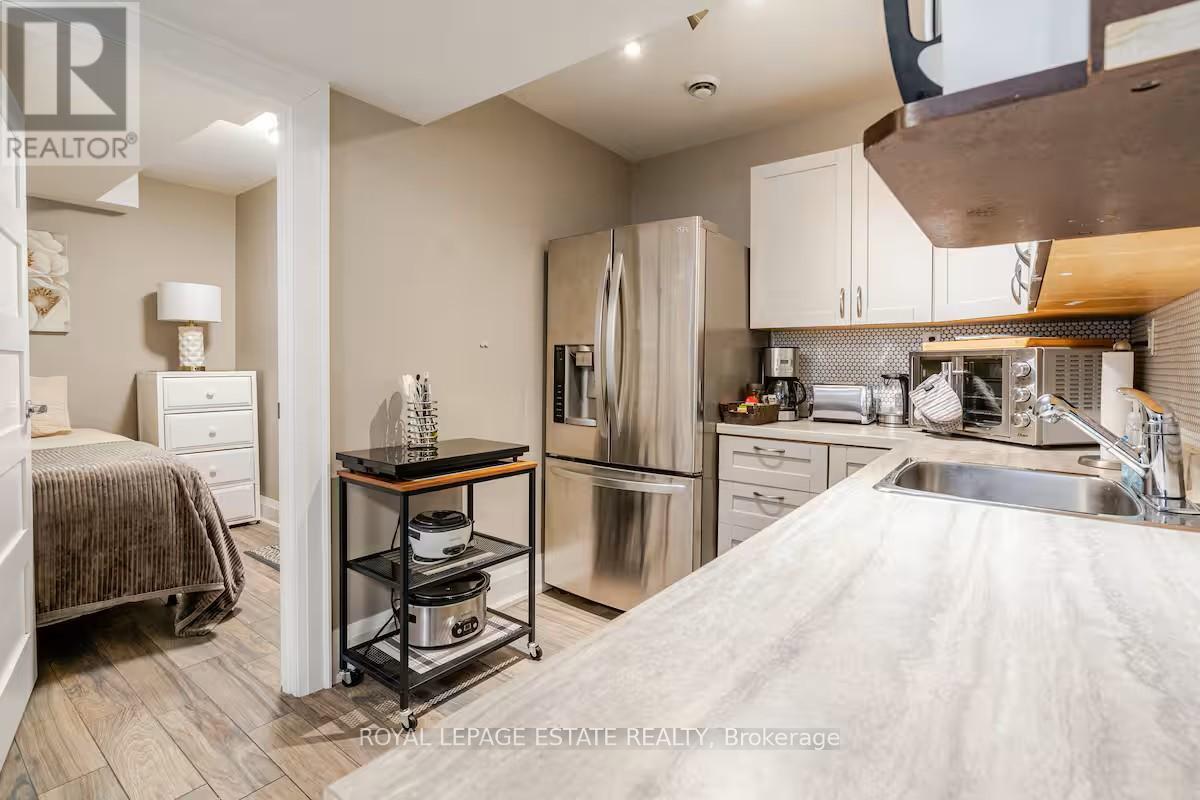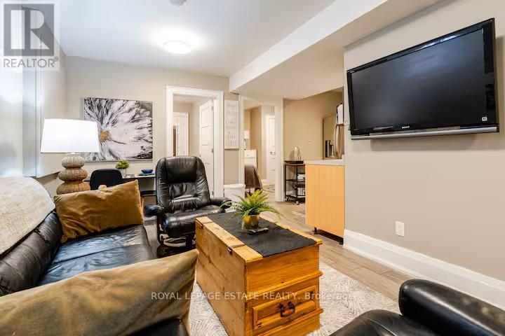 This fully self-contained suite with private entrance is ideal for short-term stays or longer-term living. Perfect for visitors attending major Toronto events such as FIFA, extended vacations, relocations, professionals, or those completing a home renovation or insurance stay. Enjoy heated/cooled floors throughout, a large flat-screen TV, and comfortable leather furniture. The kitchen includes a full-size fridge, countertop oven, and multiple small appliances, making it ideal for light, everyday meals. A private in-suite washer and dryer are included for your exclusive use-no shared facilities. Located in a quiet, family-friendly neighbourhood just a few blocks from the lake, with nearby parks, a recreation centre, sports fields, and restaurants all within walking distance. A great balance of lifestyle and convenience, close to the action without the congestion. Quick transit access with just one stop to downtown Toronto makes commuting and getting to events simple and efficient. Note: No traditional stove. Equipped with a convection microwave, toaster oven, rice cooker, coffee maker, toaster, and cookware, perfect for preparing simple meals or reheating.A flexible, turnkey space offering comfort, privacy, and convenience in a prime Toronto location. (id:49203)