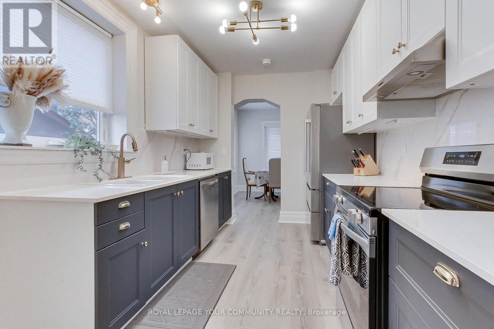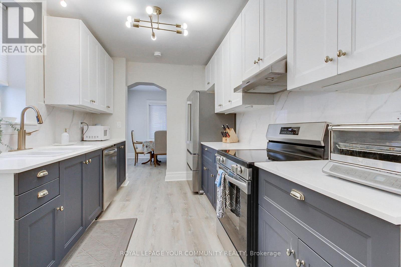 Welcome to this beautifully updated, bright and stylish lease opportunity featuring a private front porch, 2+1 bedrooms and 1.5 bathrooms, ideally situated close to schools, parks and communal amenities. This home showcases a chic and modern design with a renovated kitchen and bathrooms for a fresh, contemporary feel. This home offers a flexible layout filled with natural light from large windows, creating an inviting space for both relaxation and entertaining, The kitchen is thoughtfully designed with quartz backsplash, sleek countertops, stainless steel appliances, and abundant cabinetry from optimal storage and functionality. Each sizeable bedroom provides comfort and versatility, offering ample space for living, working or sitting back to relax. The unit also includes exclusive ensuite laundry on the second level for your convenience. Tenants are responsible for 70% of the utility bills. Street permit parking is available through the city (subject to availability). Located between St. Clair West and Eglinton, the home is within walking distance of cafes, restaurants, shops, and TTC routes, with easy access to the Allen Expressway and Highway 401 for seamless communing. A must see property offering style, comfort and convenience in a prime location! (id:49203)