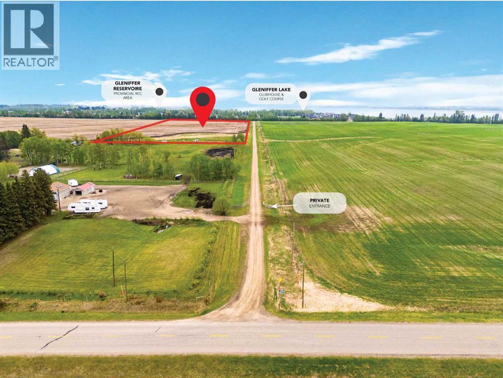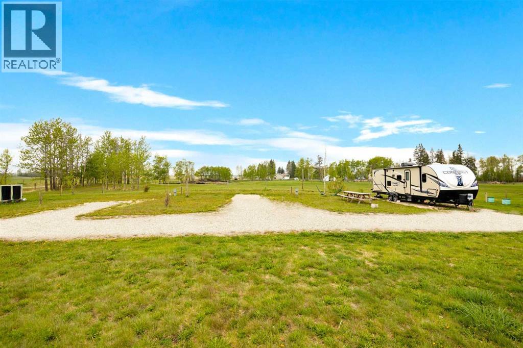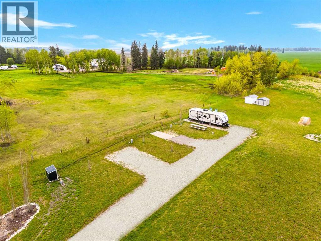 Perfect 25 acre private, gated piece of land minutes away from Glennifer Lake provincial parks for beach, swimming, paddle boating, and relaxing. Sylvan lake is also a short drive from this site. Open sky views with stunning nature views, sunrise and sunsets. Enjoy camping solo or with family and friends, lawn games, long walks, picnic meals and more. Amenities such as gas, groceries, historical landmarks, museums and ice cream store are minutes away by vehicle or bicycle. Currently, 5 acres are developed for personal enjoyment with trees, 2 storage sheds, garden option, stone/gravel fire pit, and 3 gravel trailer sites each with power, water and sewer for private ownership use. The other 20 acres are leased to a longtime local farmer who plants and harvests crops. Neighbours are fantastic. The large sceptic tank is new and has 2000 gallons with alarm. The water well was dug in 2024 and is 10 gpm 140 feet deep. Each site has 3 plug in power pedestals, one 30 amp for your trailer and 2 110 volt plug ins. 100 amp panel box was also installed for future development. Seller financing available. Realtor has interest in the property. Stop paying campsite fees and own your own private campground. Come see the amazing, private, family getaway. (id:49203)