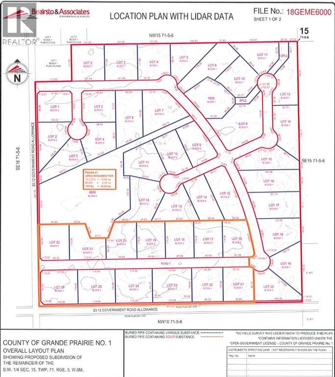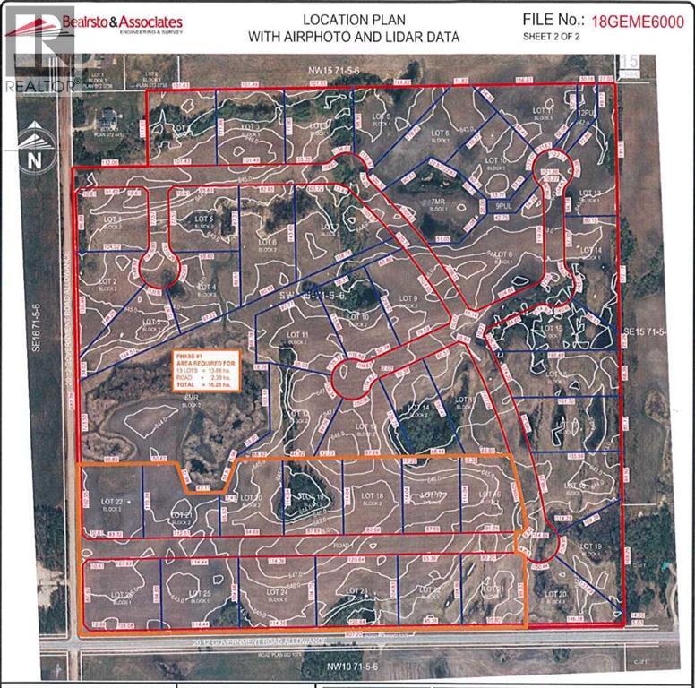 DEVELOPMENT PARCEL! Welcome to the new acreage community just SE of Grande Prairie - Heritage Estates! 146.91 acres East of Signature Falls, Sandy Ridge Estates, etc. along 68 Avenue and RR53. Wetland Assessment completed and subdivision plan approved by County. First phase approval has 13 lots ranging from 2.47 acres -3.12 acres each. The quarter to the East is also available for sale and would be ideal for future phases (MLS# A2123359). (id:49203)