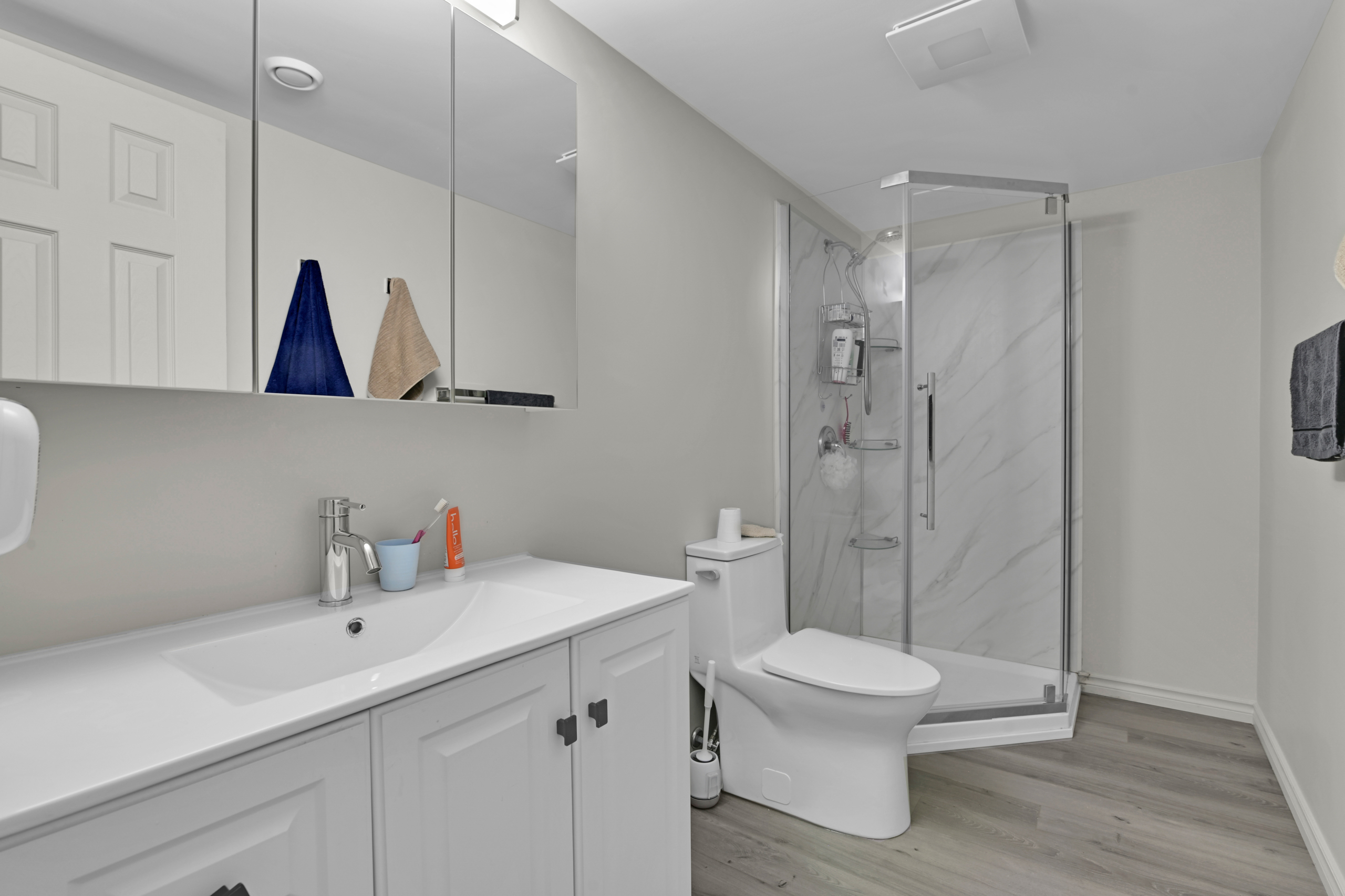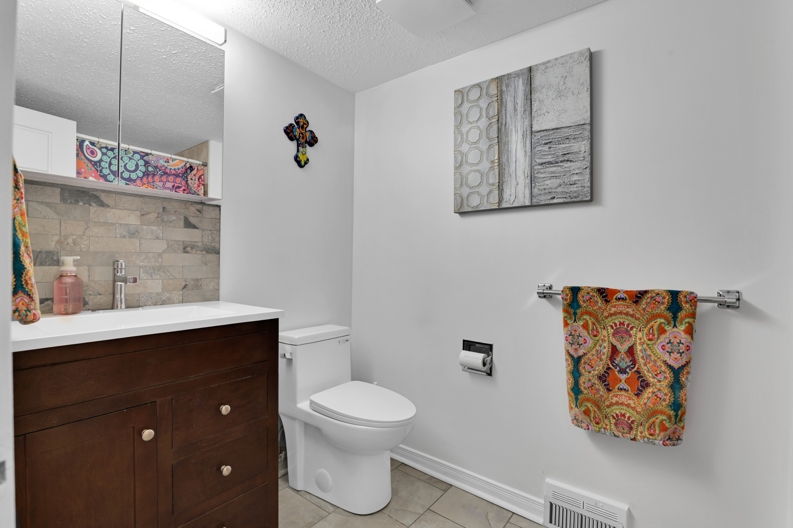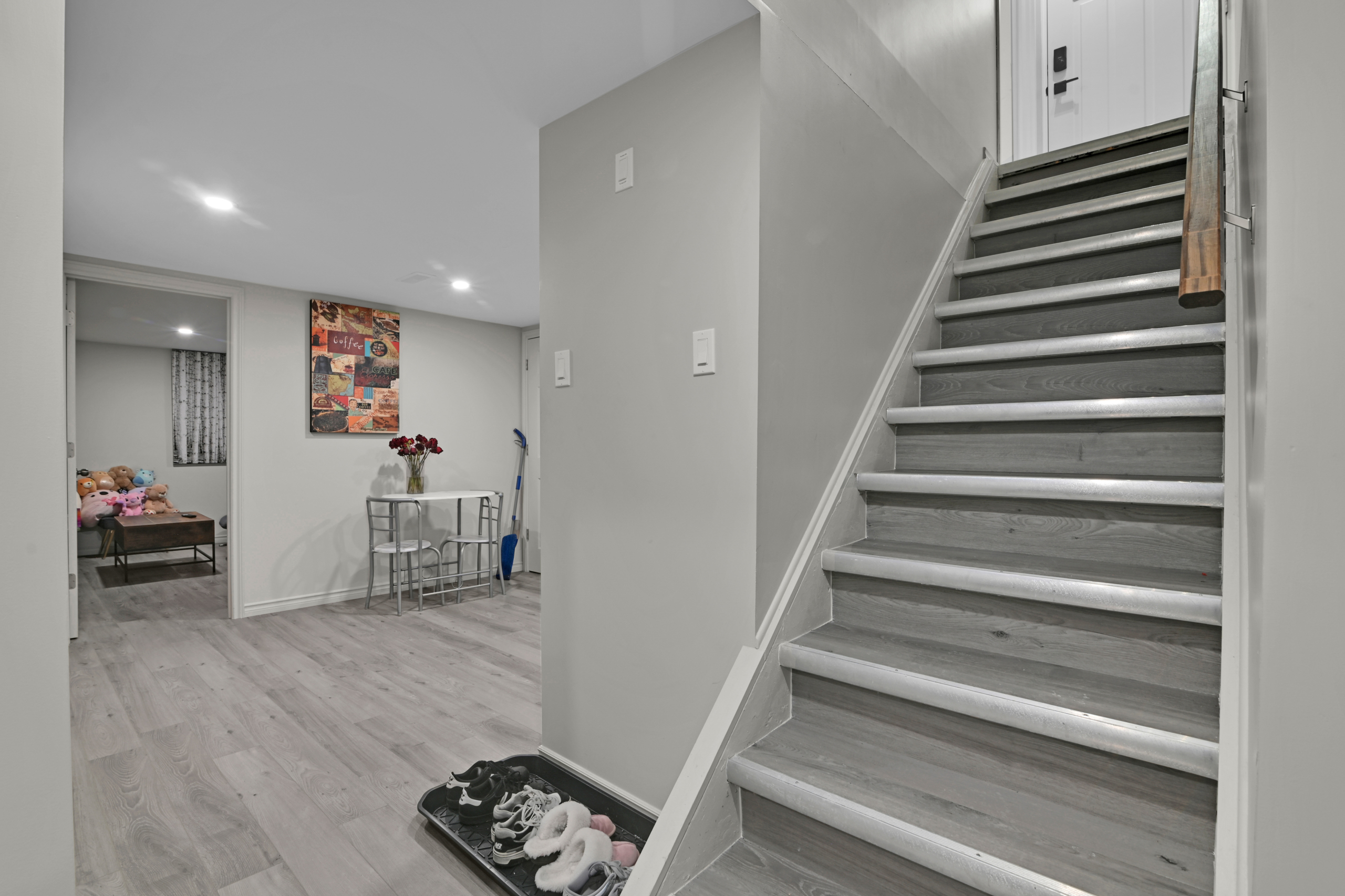 An abundance of renovations completed in 2024 bring a fresh, modern feel throughout—from the quartz kitchen with built-in workstation, updated cabinetry and appliances, to refinished hardwood floors, new lighting, and improved functionality across both levels.