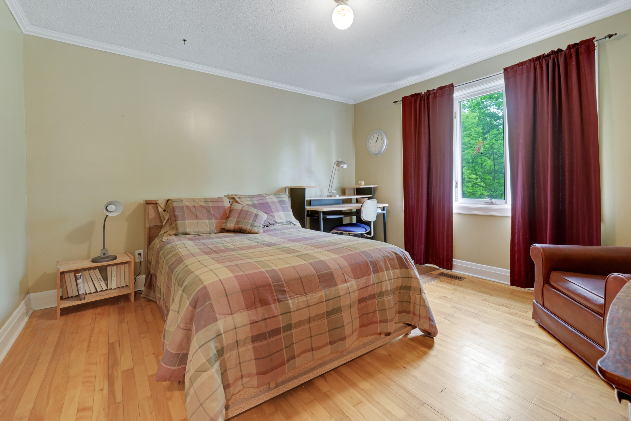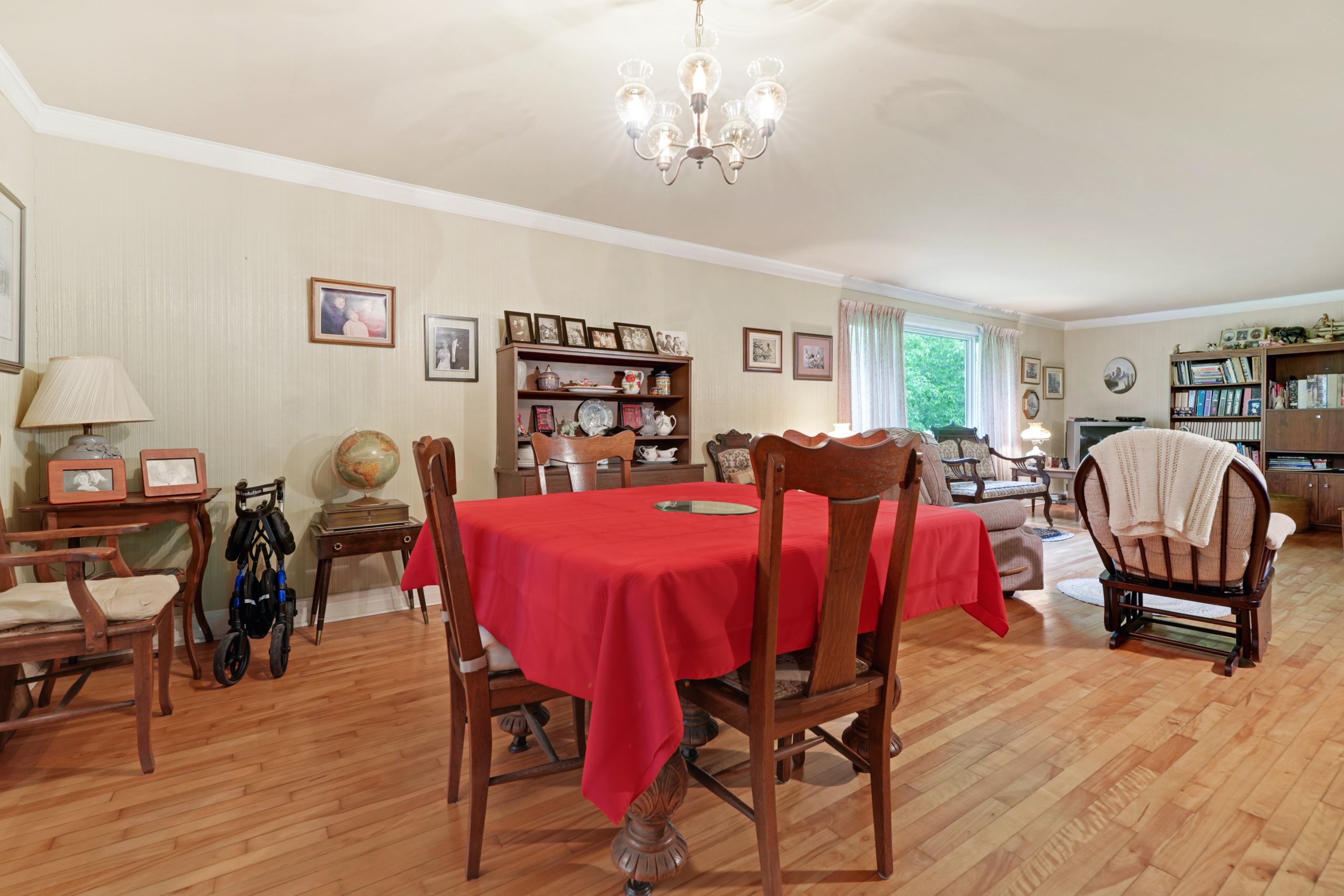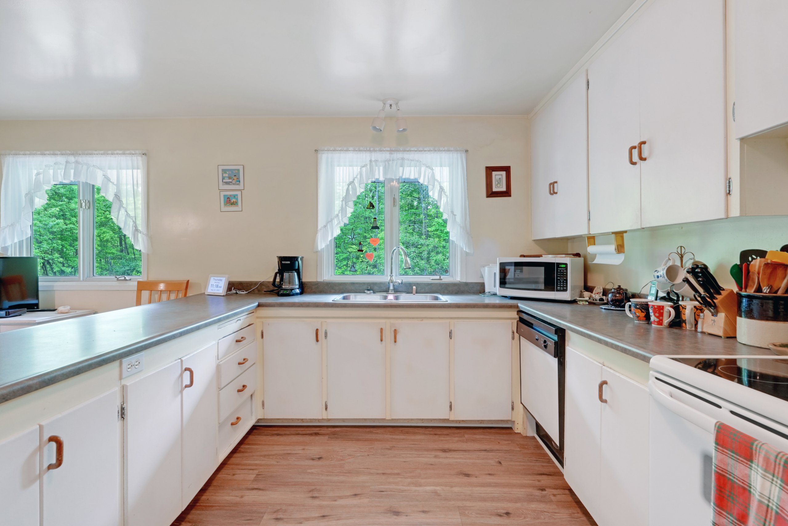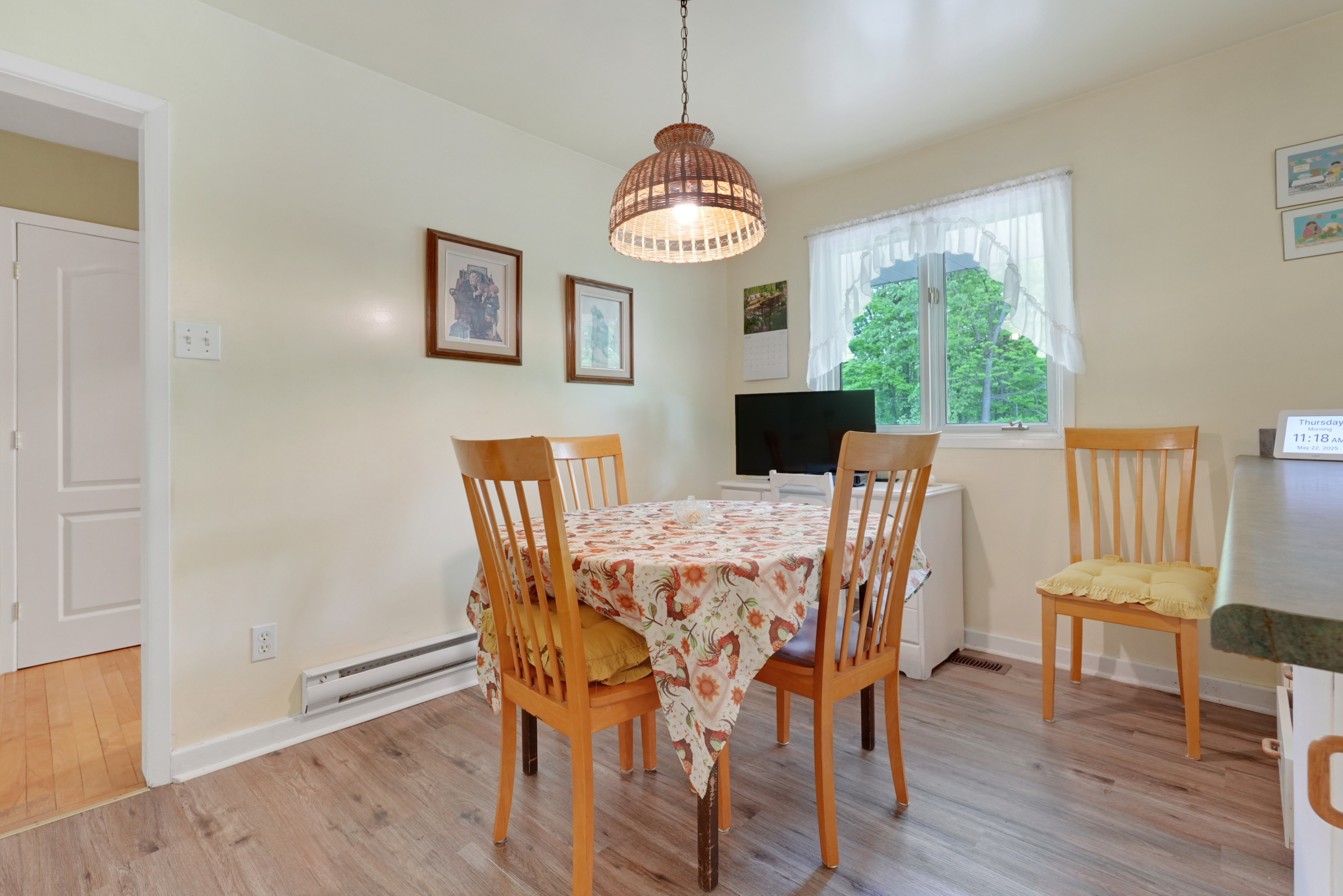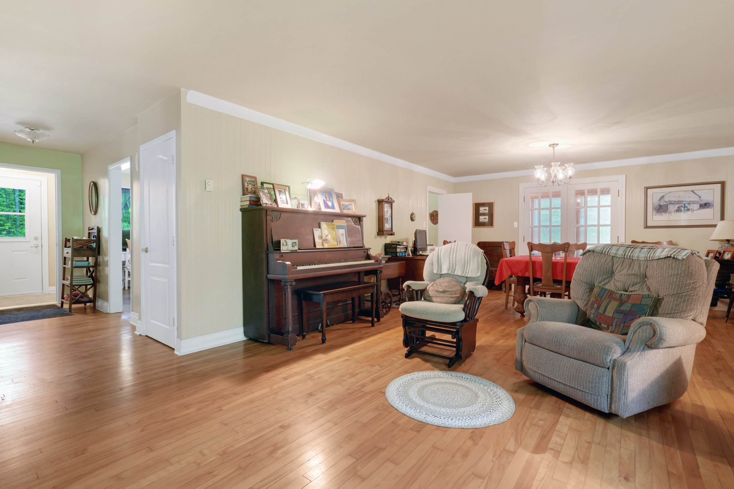 Spacious 4-bedroom, 2-bath bungalow set on over 11 acres in the quiet village of Vernon with potential to develop the land into a small subdivision. The main floor features a large primary bedroom with a double-door closet, 2-piece ensuite, and a picture window overlooking the trees. Bright eat-in kitchen with ample storage and a large window facing the private backyard with no rear neighbors. Enjoy easy main floor living with laundry, two additional bedrooms, and no carpet. The sunlit dining room leads into a generous living space and a charming enclosed sunroom with warm wood finishes. Downstairs includes a fourth bedroom, potential office, and a large unfinished area perfect for storage or future expansion. Metal roof, attached garage, and wide gravel driveway. Peaceful setting with space to grow. Ideal for multi-generational living or buyers seeking privacy and long-term potential.