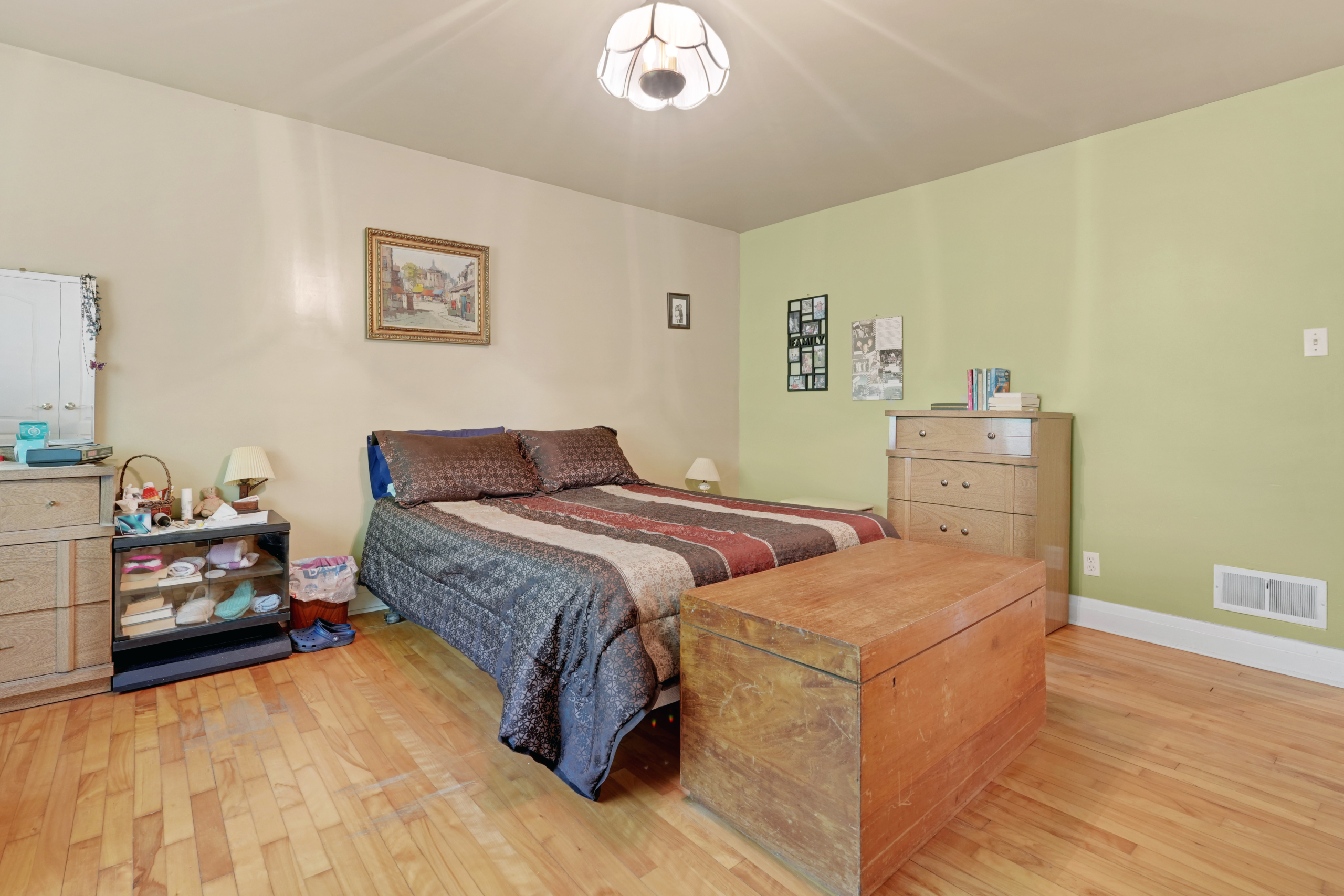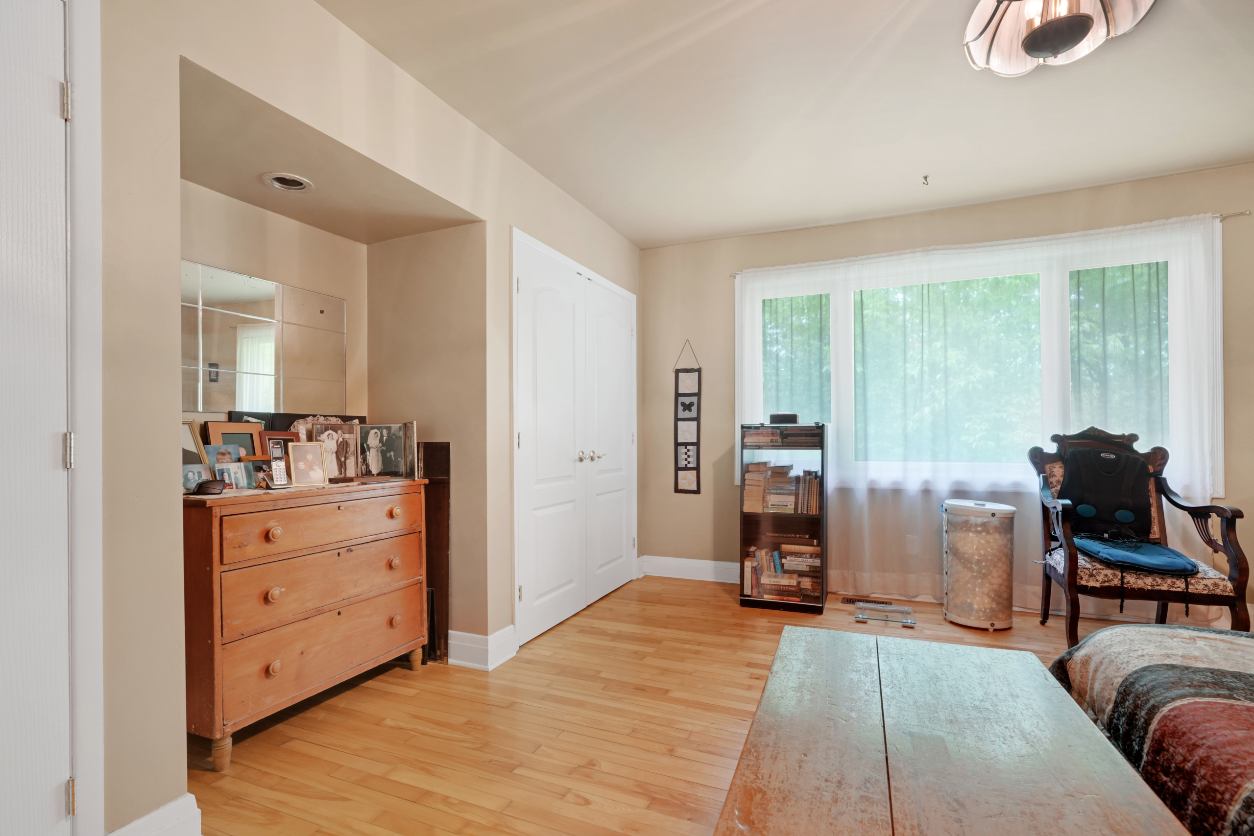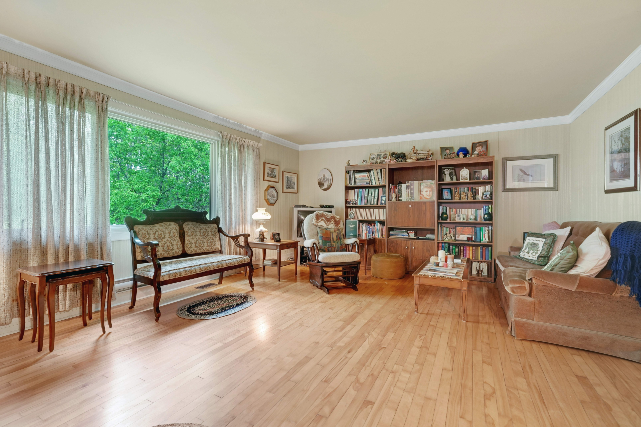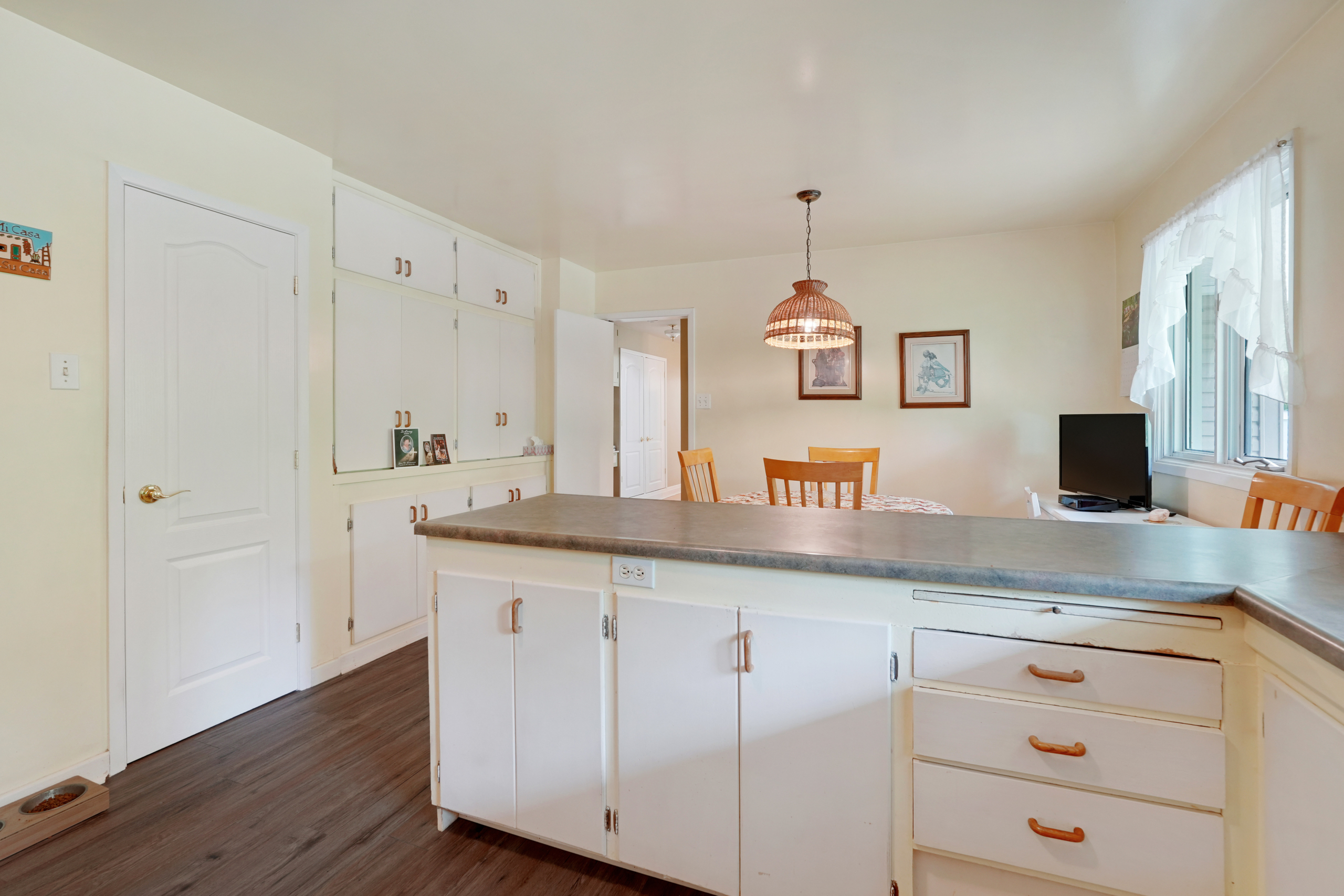 Spacious 4-bedroom, 2-bath bungalow set on over 11 acres in the quiet village of Vernon with potential to develop the land into a small subdivision. The main floor features a large primary bedroom with a double-door closet, 2-piece ensuite, and a picture window overlooking the trees. Bright eat-in kitchen with ample storage and a large window facing the private backyard with no rear neighbors. Enjoy easy main floor living with laundry, two additional bedrooms, and no carpet. The sunlit dining room leads into a generous living space and a charming enclosed sunroom with warm wood finishes. Downstairs includes a fourth bedroom, potential office, and a large unfinished area perfect for storage or future expansion. Metal roof, attached garage, and wide gravel driveway. Peaceful setting with space to grow. Ideal for multi-generational living or buyers seeking privacy and long-term potential.